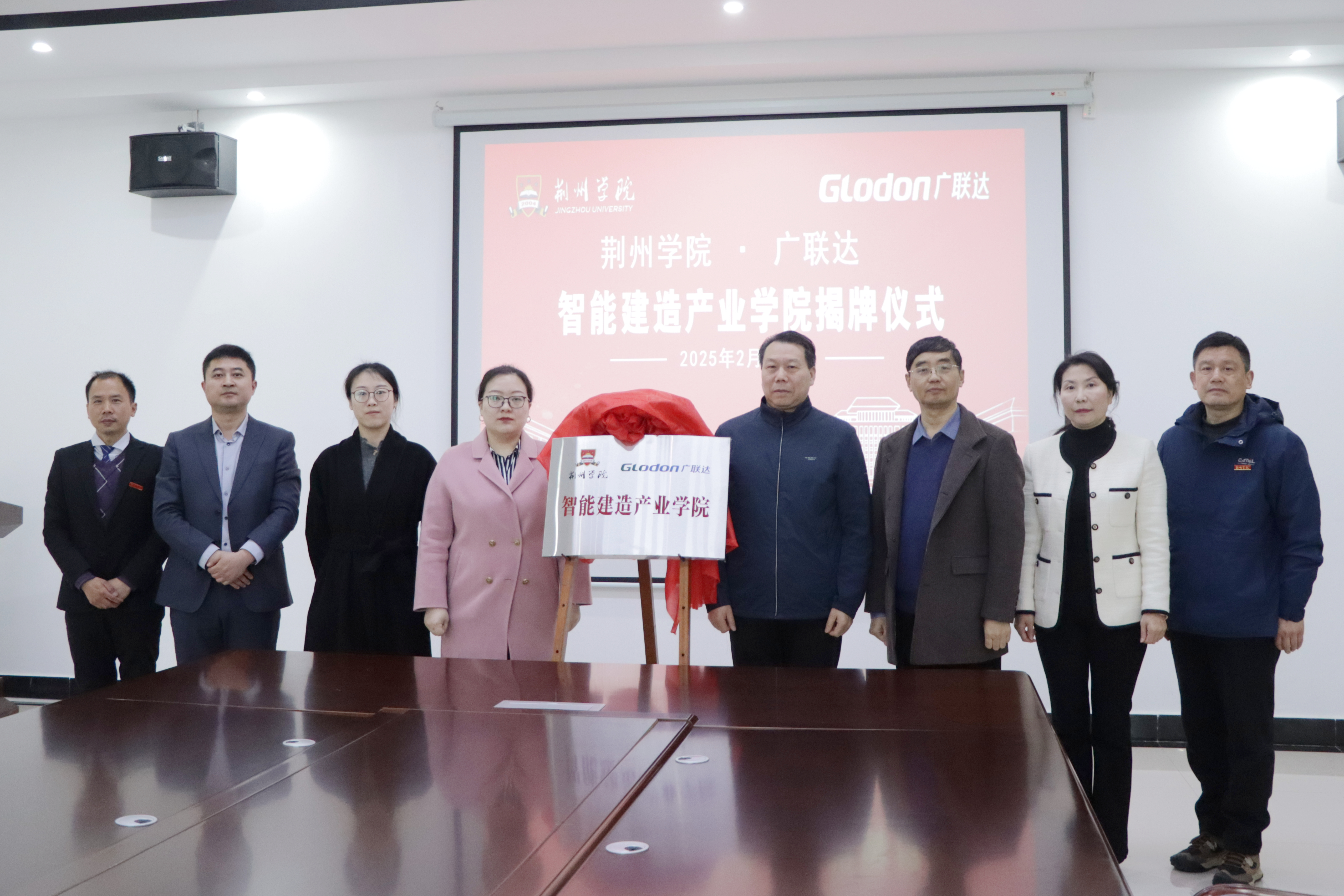随后,聂好春代表学校与广联达科技股份有限公司正式签约、揭牌,校企领导一同合影留念。