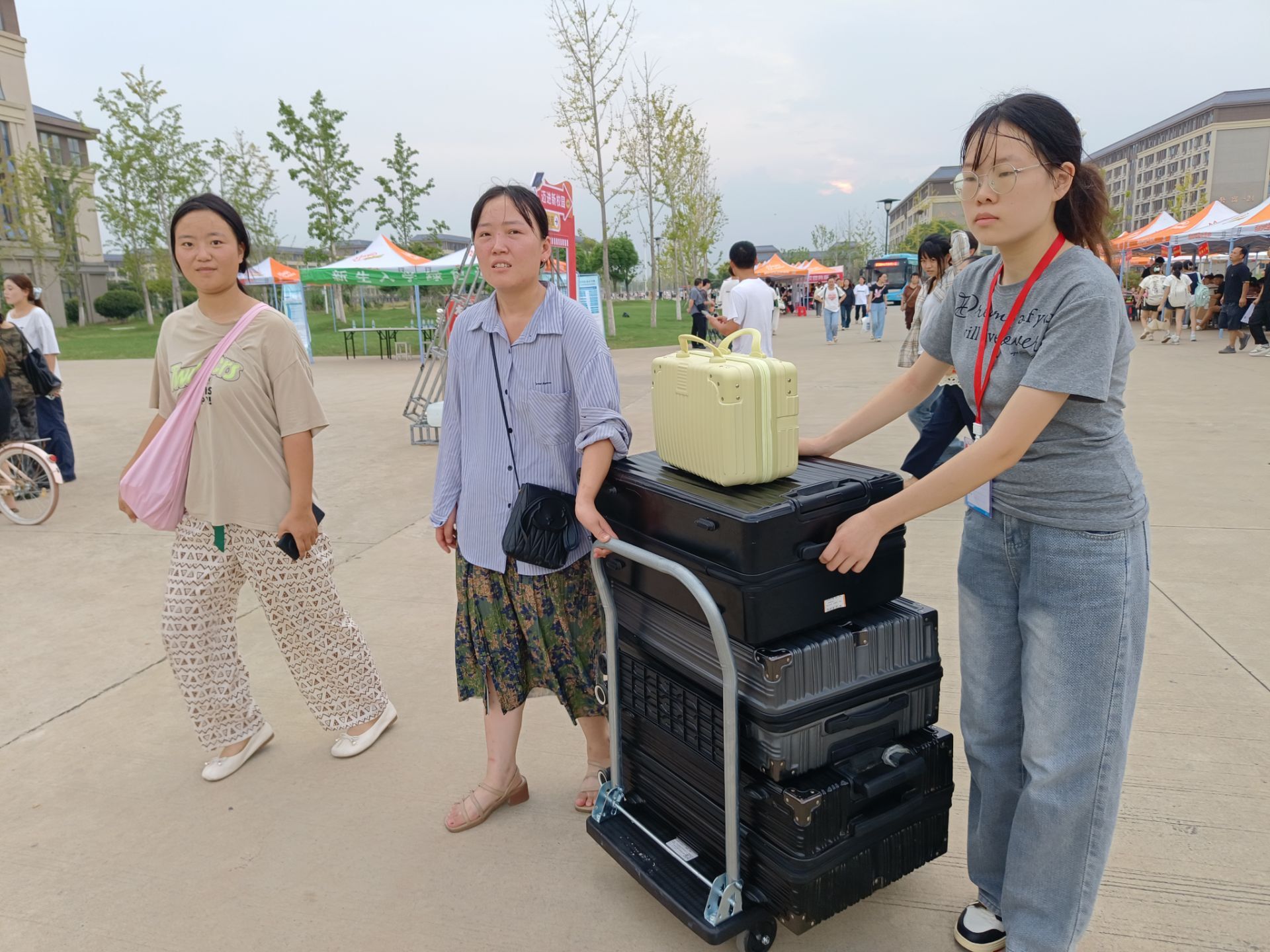 现场最亮眼的当数热情洋溢的志愿者们,他们带着统一工作牌,穿梭在校园中,积极协助新生搬运行李、引导路线,耐心解答疑问。每一名新生入学都有一名专业的志愿者全程陪同,让新生和家长感受到学院的关怀与贴心。来自造价专2501班的新生张颖感慨道:“刚进校园就被学长学姐的热情感染,他们对我这个小萌新非常有耐心,回答了我很多问题,让我对大学生活的担忧一下子消散了。”