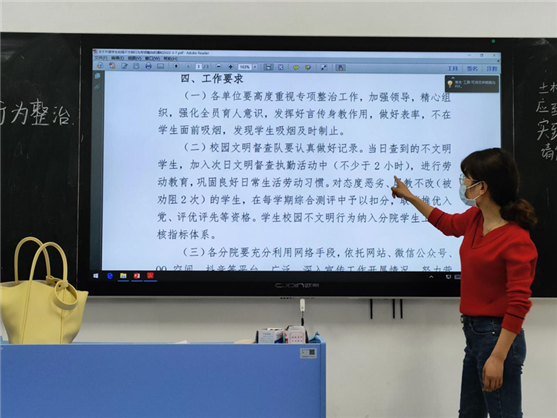 其中20级辅导员罗洁老师于2022年3月13日18点半在教学楼2303教室开展的主题班会给同学们留下了深刻印象,活动中通过罗洁老师生动有趣的讲解,播放校园文明行为的相关幻灯片,以加深大家对文明的深刻认识,结合趣味问答让同学们发表自己独到的见解,并且列举了在校园中时常出现的不文明行为现象。每个同学都积极踊跃的参与进来,达到了增强教育学生校园文明行为的预期目的。罗洁老师通过图片的形式给大家带来了视觉的冲击,引起同学的共鸣,并对此发表自己的看法,让同学们真真切切地感受到这些事件就在我们身边,同时深入主题讲述校园文明行为就是一种习惯。