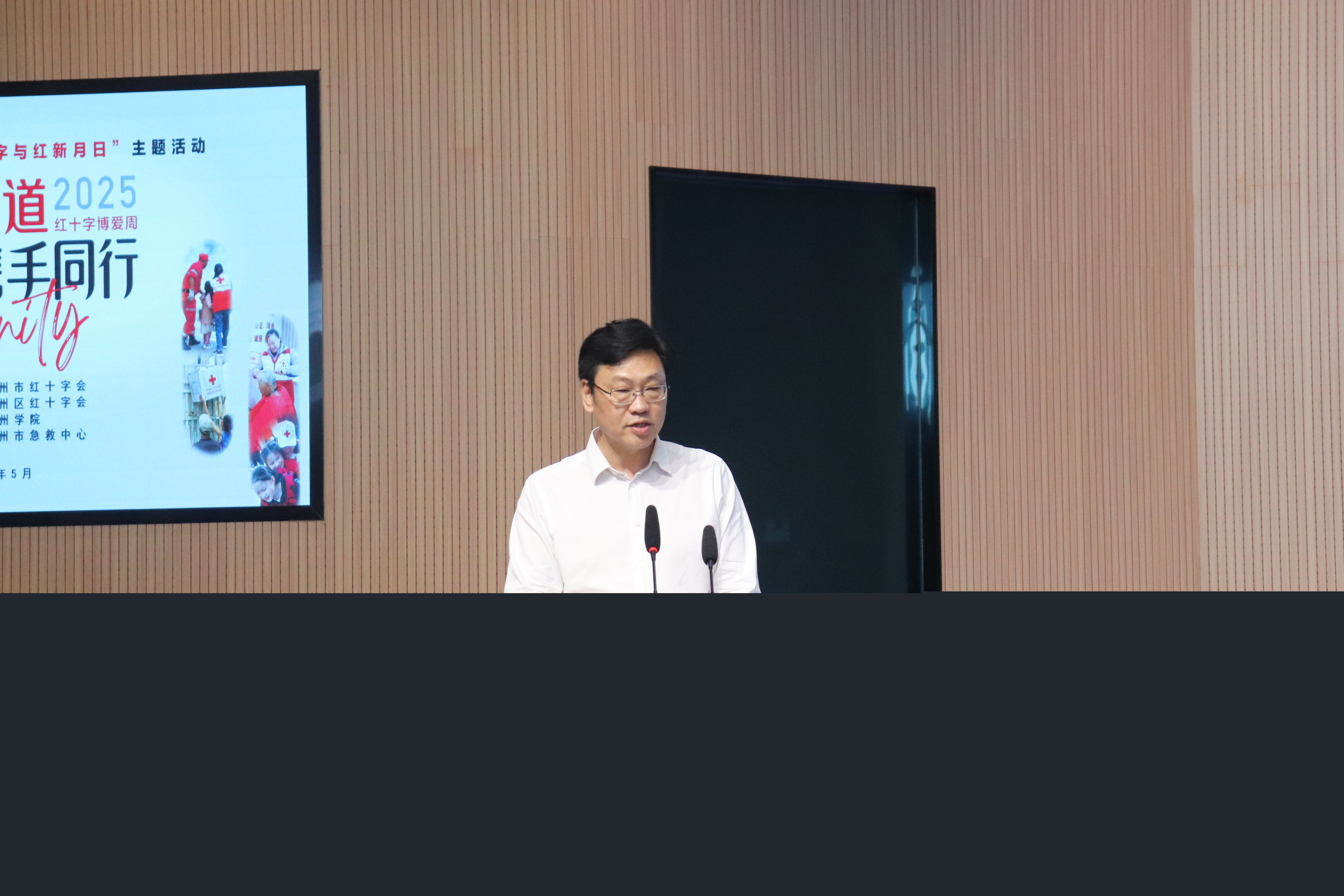 本网讯(通讯员 梁威怡)为纪念第78个“世界红十字与红新月日”,弘扬“人道、博爱、奉献”精神,5月9日,我校与荆州区红十字会共同举办“红十字博爱周”主题活动。荆州区人民政府副区长、荆州区红十字会会长关勇,荆州区红十字会党组书记、常务副会长张芳,荆州区红十字会党组成员、专职副监事长向贝莅临学校活动现场,我校党委书记张晓彬,副校长付秋峰、刘瑾,以及职能部门负责人、师生代表500余人共同参加了公益活动。本次活动由刘瑾主持。