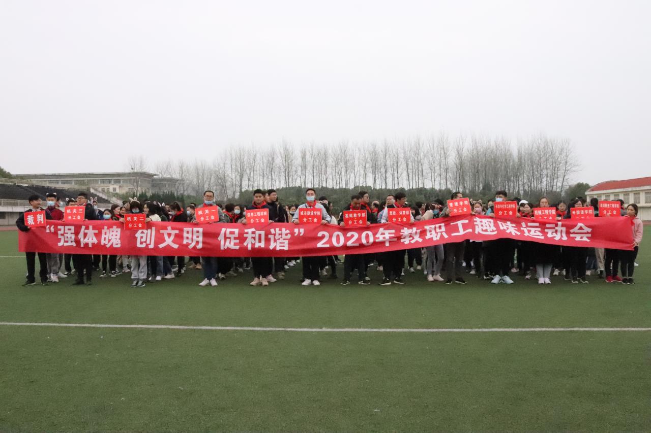 本网讯(记者 黄思琦) 为丰富全体教职工文体生活,增进凝聚力、向心力,提高工作效率,营造良好的工作氛围,1120日下午,由学院工会举办,各分工会及体育教学部承办的“强体魄、创文明、促和谐”2020年教职工趣味运动会,在学院田径场如火如荼地展开。