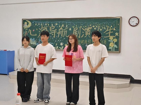 在阵阵掌声中,财管2402班带来情景剧《向阳而生》,在大学校园里,同学们面临着学业、社交、自我认知等方面的心理挑战,而剧中,同学们通过参与心理健康活动,大家相互帮助、共同成长,学会以积极心态面对生活;随着赛程渐入尾声,财管2403班带来的《心海灯塔》登场,家境贫寒的林夏被学业与家庭压力压得濒临崩溃,性格内向的陈默因社交恐惧自我封闭,一次意外冲突与善意关注打破僵局,在室友苏然、心理老师张老师及同学们的帮助下,二人走进心理咨询室直面内心困境。全部剧目表演结束后,参赛同学认真聆听评委点评。毛佳宁老师,主席团成员分别指出了各班的优缺点,使他们能够在以后的比赛中查漏补缺,更上一层楼。最终财管2404班《沉默》获得一等奖并成功晋级校级复赛,财管2402班《心海灯塔》获得二等奖,会计2402 财管2401《无声突围》和会计2304《勇敢说“不”》获得三等奖,财管2402《向阳而生》获得优胜奖。