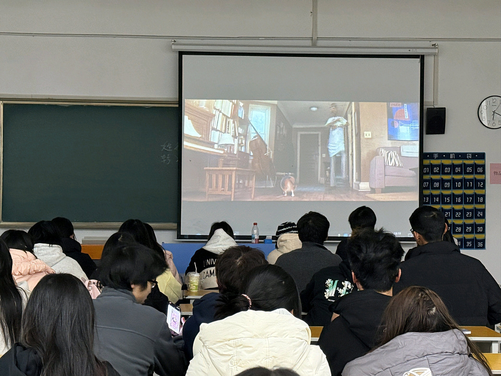 在观影过程中,同学们用心感受着影片中所传达的情感和思想。这部电影不仅生动形象地向观众呈现对梦想的执着和对生活的热爱。影片通过乔伊的经历,鼓励人们挣脱对“意义”的执念,不要被功利的目标裹挟本心。同时,还展现了对平凡日常的深刻洞察,传递出生命的价值不在于宏大成就,而在于珍惜当下的每一份小美好。