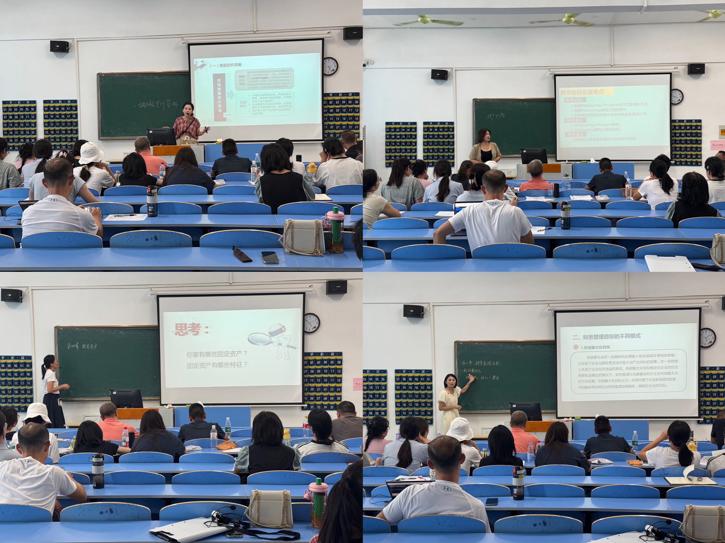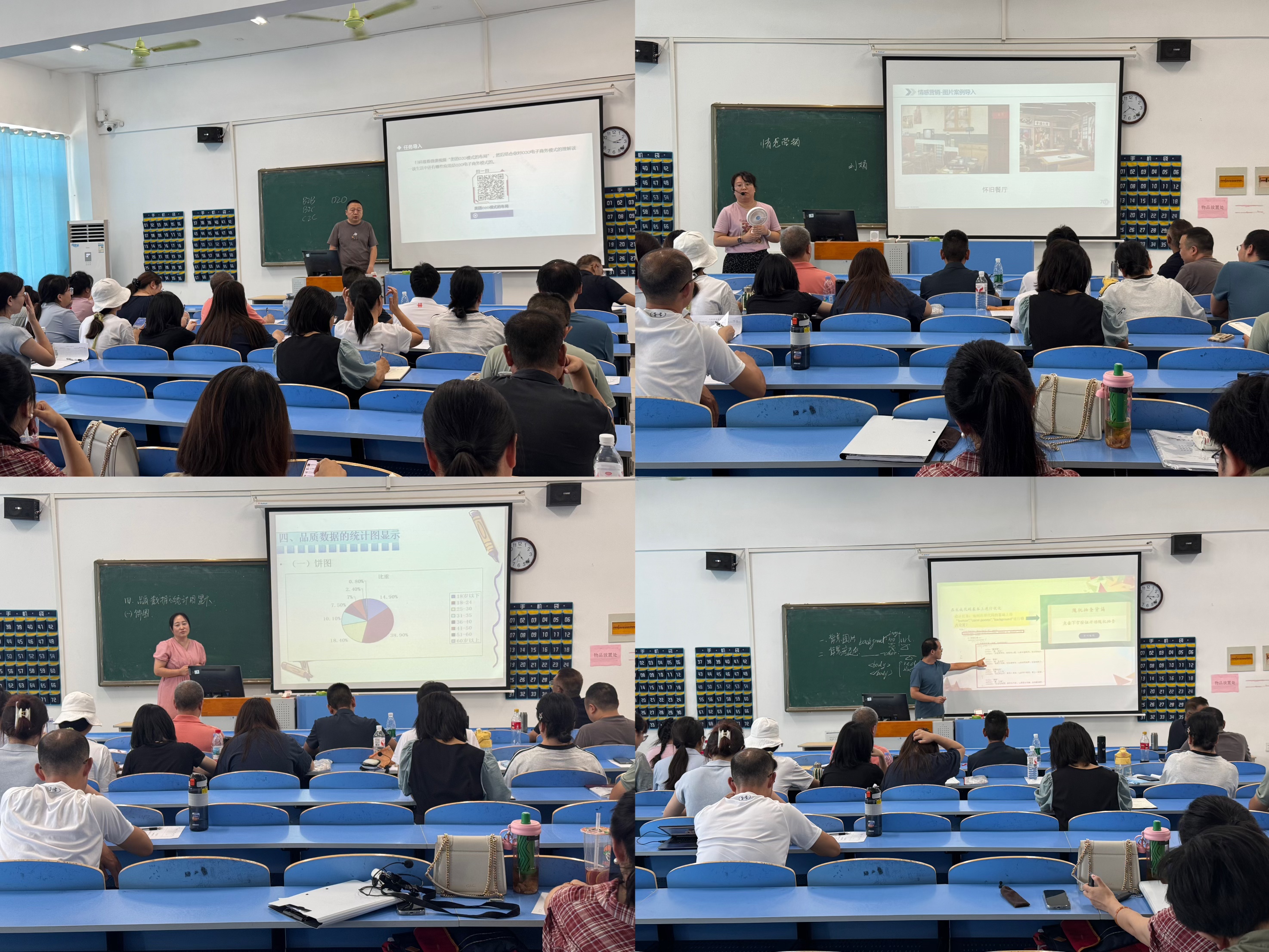 活动伊始,八位教师分别进行优质课展示,随后由评委针对优质课的标准、教学设计的优化、课堂互动的有效性等关键问题,对各个老师进行了不同的评价。鲁衎老师率先从“O2O电子商务模式”和“新销售”这两个关键词上着手,分享了自己的见解;刘娟老师分享了“情感营销”相关内容;杨青老师强调了“MJ+PS”对于电子商务的重要性;胡雄老师介绍了课程中“背景”的应用;何颖老师讲解了“市场撇脂定价策略”;方静老师剖析了品质数据的统计图分析;罗慧君老师就生活中经常接触的例子向大家分析了固定资产;范苏丹老师则和大家聊了聊财务管理目标中的“利润”这一专题。