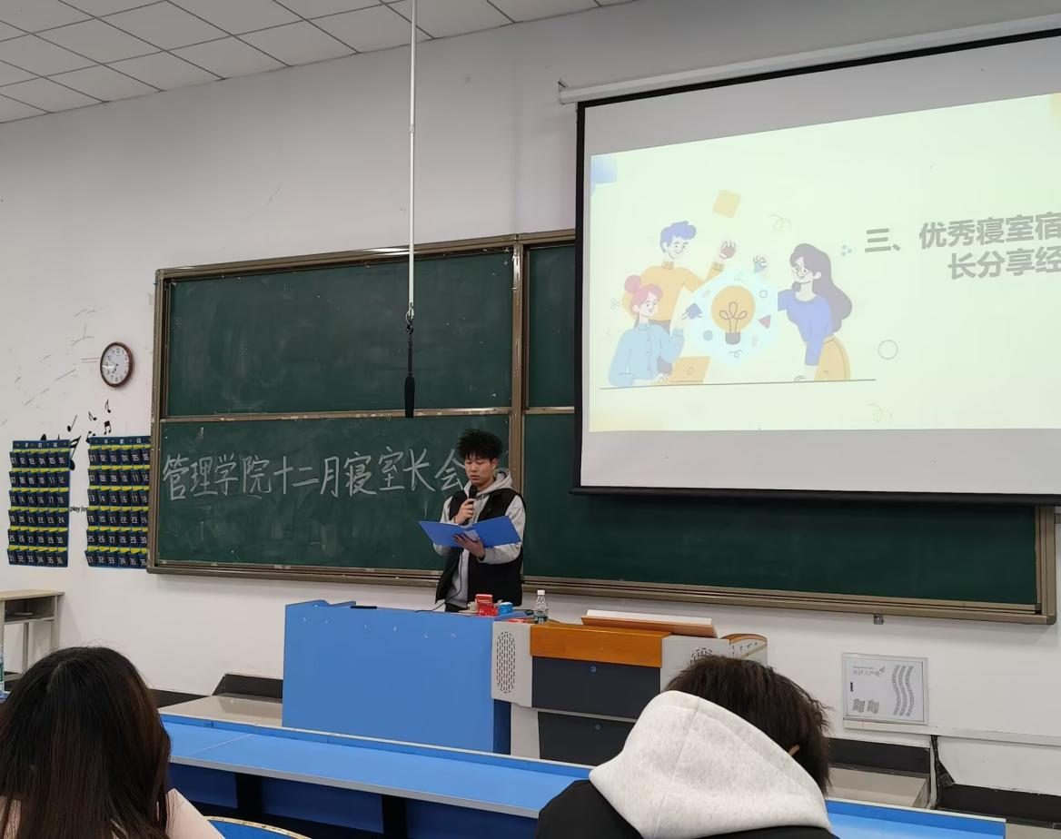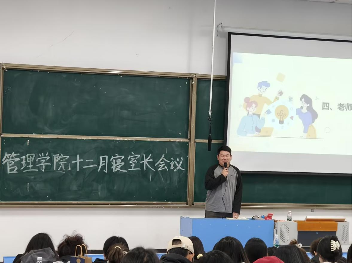 本网讯(通讯员:陈逗)为进一步提升校园寝室管理水平,营造良好的住宿环境,管理学院于12月23日晚在5405教室召开了十二月寝室长会议。出席本次会议的成员有管理学院团总支书记季诚老师以及24级全体寝室长。