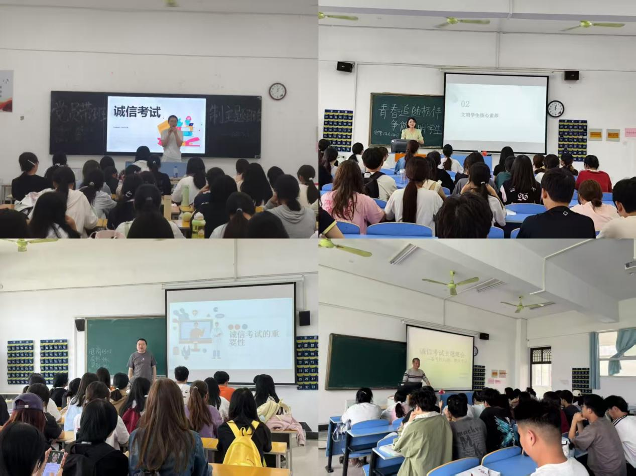 随后,各班班主任着重强调了诚信考试的意义。通过真实案例,深入剖析考试作弊的严重后果,强调诚信考试不仅是对知识的检验,更是个人品德修养的体现。带领学生认真学习学校考试规章制度,明确考试违规处理办法,树立正确的考试观,引导大家自觉遵守考场纪律,坚决杜绝作弊行为,共同维护公平公正的考试环境。