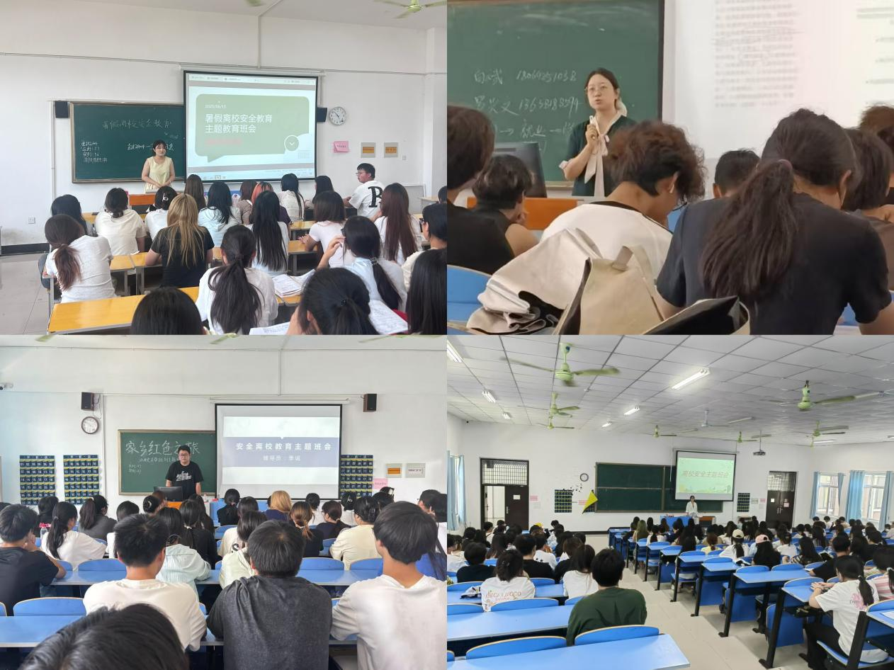 班会上,各辅导员围绕离校安全、交通安全、假期兼职安全等三个方面的内容展开详细讲解。离校安全方面,老师提醒同学们离校前务必检查宿舍水电、门窗是否关闭,妥善保管好个人物品,避免财物损失;交通安全方面,强调返乡途中要选择安全的交通工具,不乘坐非法运营车辆,并且随时与家人保持联系,并确保通讯顺畅;假期兼职安全方面,叮嘱同学们提高警惕,选择正规招聘平台,不轻信高薪轻松的虚假宣传广告,谨防传销和网络诈骗。除此之外,暑期将至,同学们务必提高防溺水安全意识,严禁到无安全设施、无救护人员的水域游泳。游泳时选择正规泳池,并做好热身运动,遇到他人溺水时,应立即呼叫专业人员进行救援,切勿盲目下水施救。