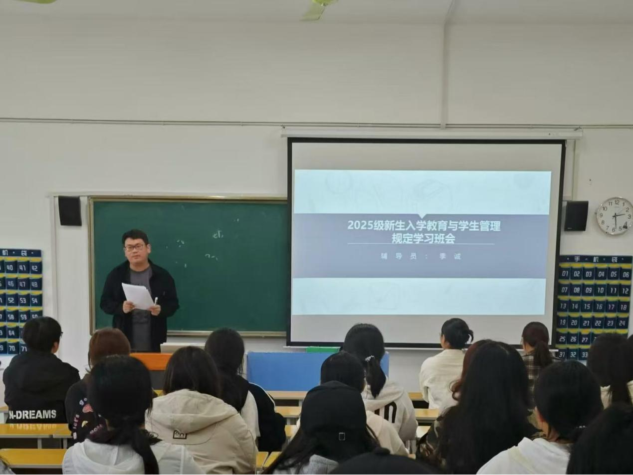 本网讯(通讯员:向恩东)为帮助2025级新生快速适应大学生活,明确校规校纪,树立规则意识,管理学院于9月21日组织全体新生以“入学教育”为主题召开班会,系统性学习学校学生管理相关规定,为新生成长成才筑牢思想根基。