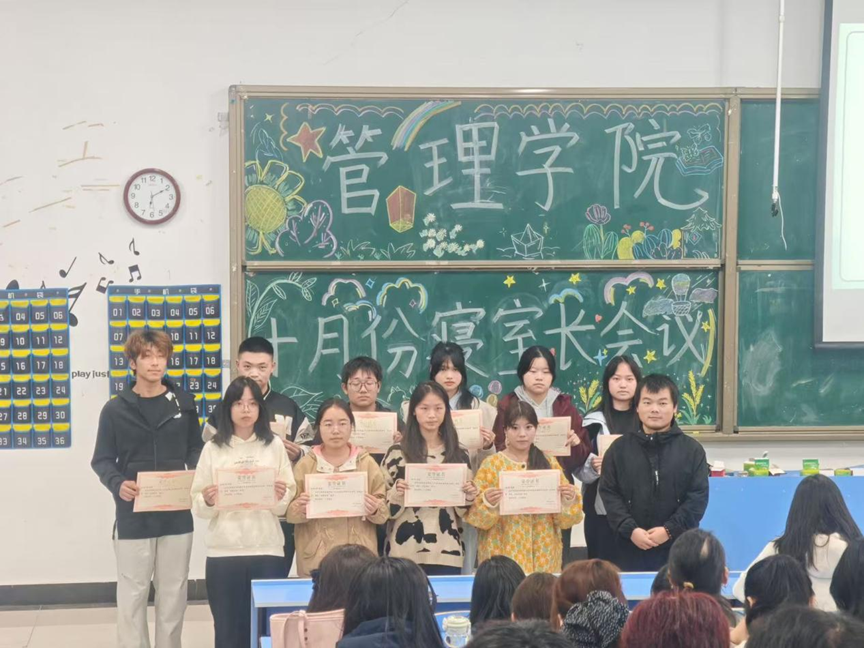 本网讯(通讯员:朱记双)为强化宿舍精细化管理效能,培育宿舍文明新风,扎实筑牢宿舍安全卫生防线,构建温馨友爱的集体生活环境。管理学院于10月29日晚在5405教室召开10月份寝室长会议。出席本次会议的有学院学生第一党支部书记关婧瑶、团总支学生会主席团成员以及全体25级寝室长。