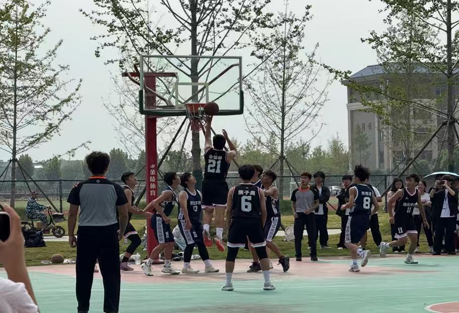 随着裁判的一声哨响,比赛正式开始。双方队员迅速进入状态,展开了激烈的角逐。进攻方球员们凭借着默契的配合和出色的个人技术,不断突破对方防线,试图将球送入篮筐。防守方也毫不示弱,他们紧密协作,顽强抵抗,一次次成功地化解了对方的进攻。在比赛过程中,各队队员们充分发扬了团结协作、顽强拼搏的体育精神。他们不畏强敌,敢打敢拼,即使在比分落后的情况下,也始终没有放弃,而是奋起直追,努力缩小比分差距。这种永不言败的精神,深深地感染了现场的每一位观众。场下的观众也被比赛的紧张气氛所感染,他们热情高涨,纷纷为自己支持的球队呐喊助威。加油声、欢呼声此起彼伏,整个篮球场上洋溢着青春的活力和激情。