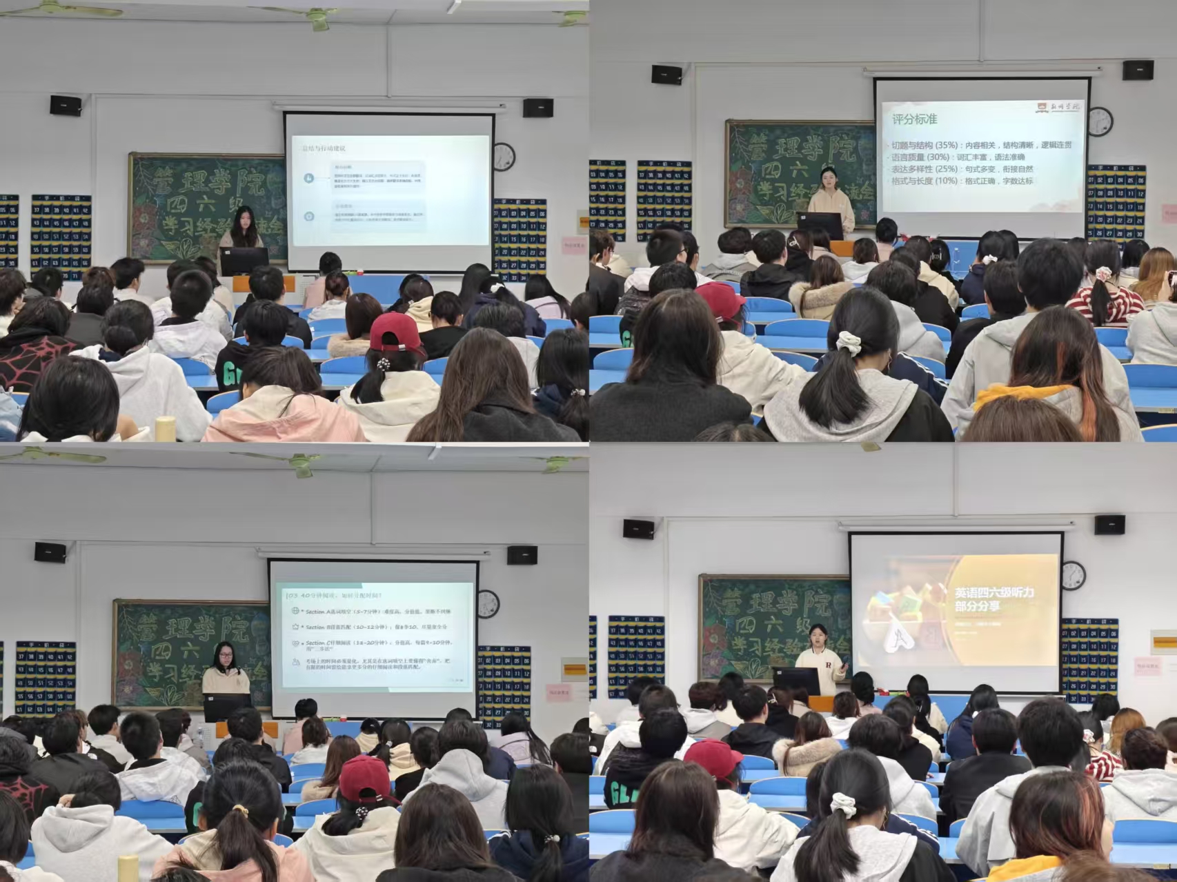 此次英语四六级经验分享会不仅为同学们搭建了高效交流的平台,更帮助大家明晰了备考方向,缓解了焦虑情绪。会后不少同学表示,根据分享内容调整了备考计划,对即将到来的英语四六级考试更有信心。未来,管理学院将持续开展各类学业帮扶活动,助力学生成长成才。