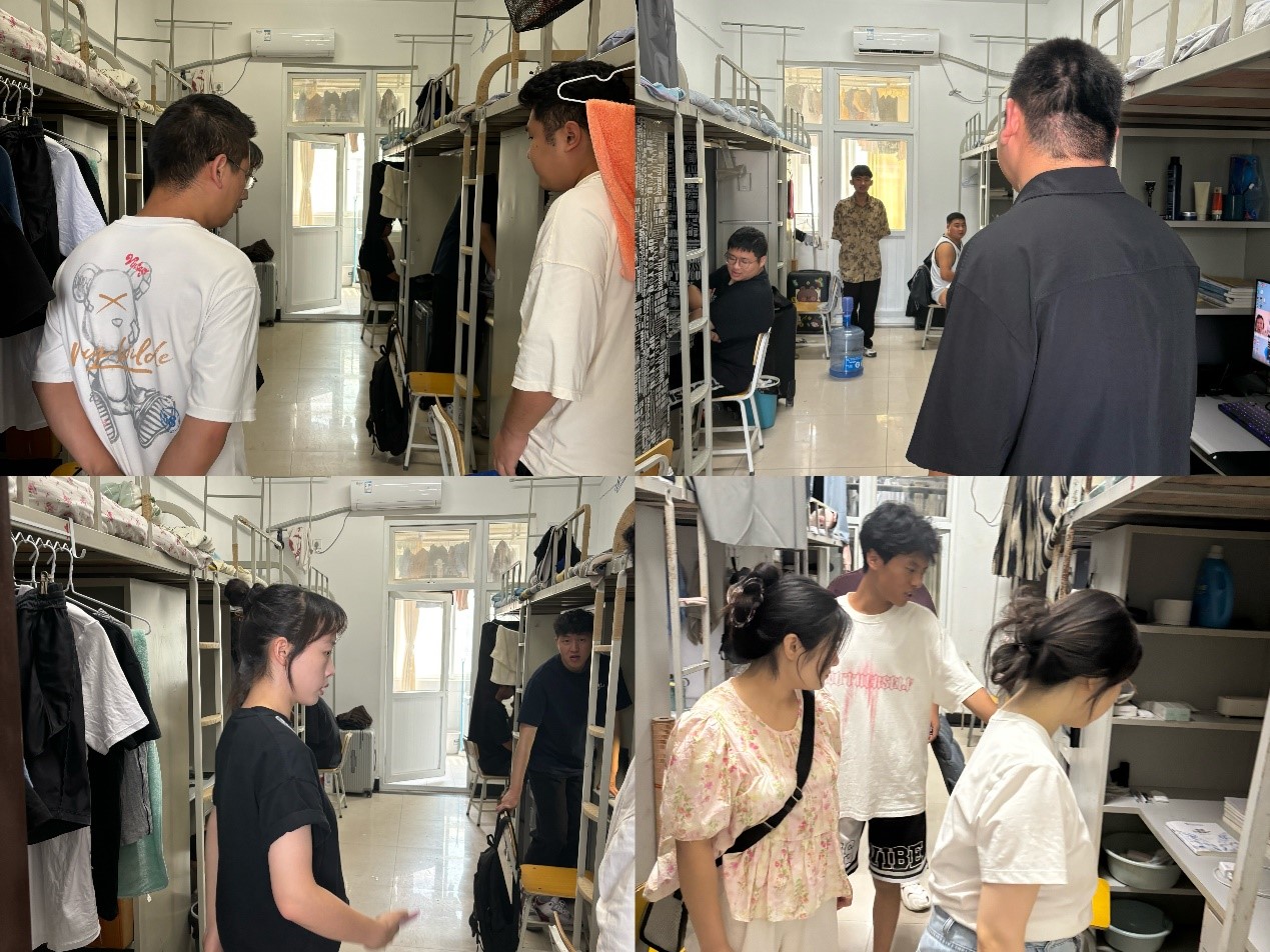 走访期间,各位老师与新生亲切交流,细致询问其到校感受、生活状况及对校园的初步印象。在交流过程中,老师们着重强调了宿舍安全,特别是安全用电与用火规范,明确禁止吸烟及使用大功率电器等行为,同时也鼓励学生定期自查安全隐患,一旦发现潜在风险,立即上报。随后针对学生关注的电器使用、床帘悬挂等问题,老师们细心解答,并重申增强自我保护意识的重要性。最后老师鼓励同学们要保持宿舍整洁,养成良好的生活习惯,以积极的心态迎接新学期的挑战。