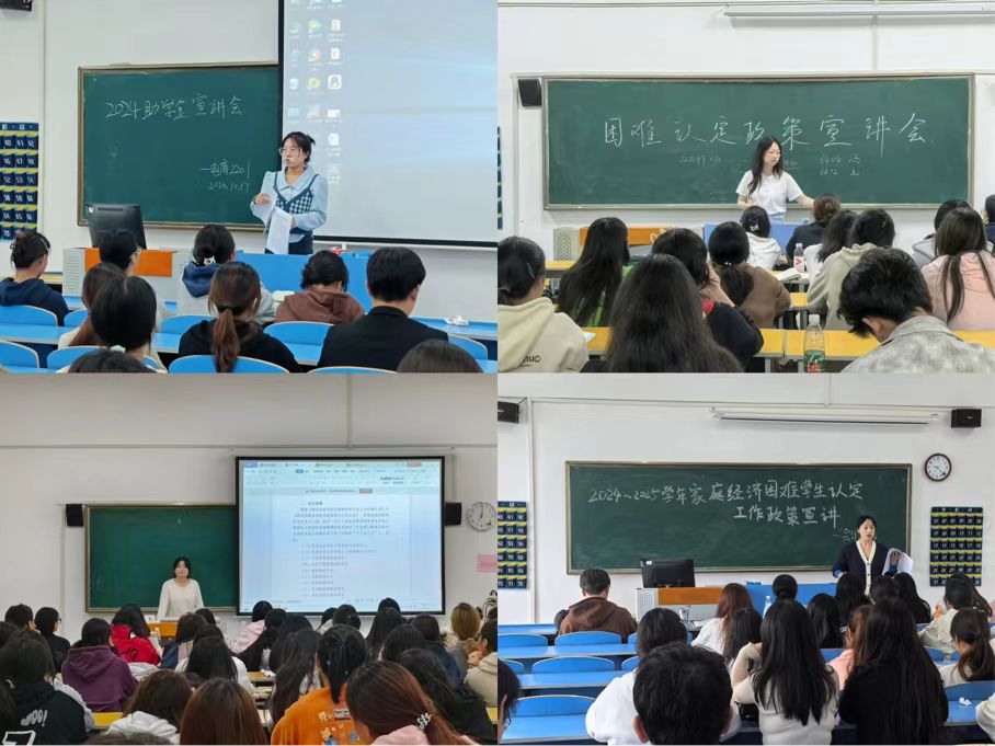 在这次宣讲会上,辅导员详细解读了国家关于家庭经济困难学生资助政策的相关内容,包括资助对象、资助标准、资助程序等,并强调了家庭经济困难学生认定工作要坚持公开、公平、公正的原则,确保每一位符合条件的学生都能享受到资助政策。除此之外,各班还从国家关怀的角度出发,强调家庭经济困难学生认定工作的重要性,希望同学们正确看待认定工作,消除心理负担。通过此次宣讲会,同学们对国家资助政策有了更加清晰的认识,为资助工作的顺利开展奠定了基础。