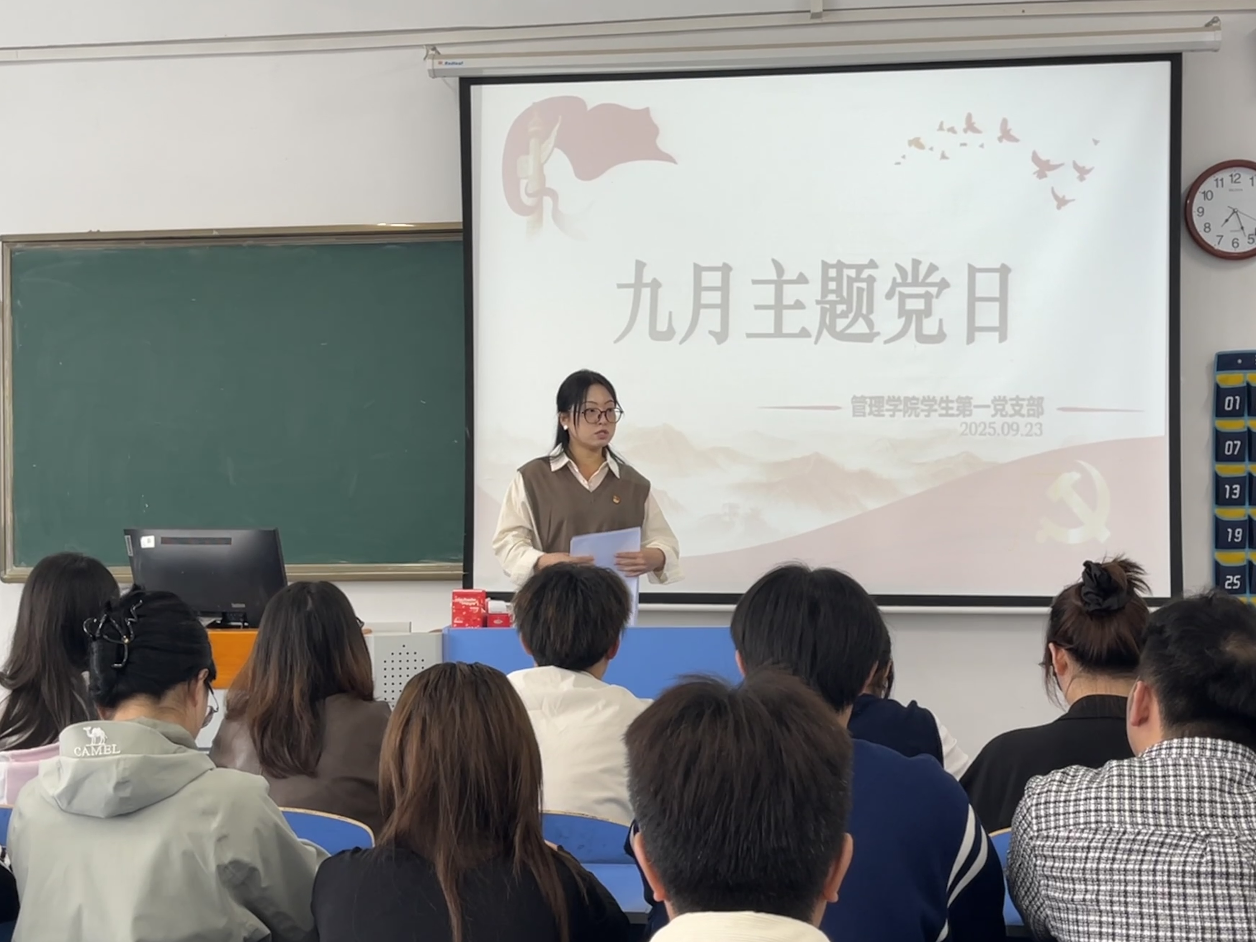 在政治学习后,管理学院第一、第二党支部开展了九月主题党日活动,会上先由党支部书记带领支部成员重温入党誓词、集体朗诵党章并组织党员交纳九月党费。随后党支部书记组织开展理论学习,重点学习了以下内容:(1)习近平:在纪念中国人民抗日战争暨世界反法西斯战争胜利80周年大会上的讲话(2)《求是》杂志发表习近平总书记重要文章《弘扬伟大抗战精神,向着中华民族伟大复兴的光辉彼岸奋勇前进》(3)习近平给全国特岗教师代表的回信(4)习近平作出重要指示强调 锲而不舍落实中央八项规定精神 推进作风建设常态化长效化(5)湖北省委常委会扩大会议暨省委党的建设工作领导小组会议召开 锲而不舍落实中央八项规定精神 推进作风建设常态化长效化。此后,支部开展主题研讨,教职工党员围绕“如何将学习教育成果转化为实干担当的具体成效”、学生党员围绕“传承抗战精神,勇担时代使命,如何在强国建设中彰显青春力量”分别谈认识、讲感悟,结合自身岗位实际与成长需求明确努力方向,切实把学习成效转化为履职尽责、挺膺担当的行动自觉,以实干践行初心使命,以青春力量助力强国建设。