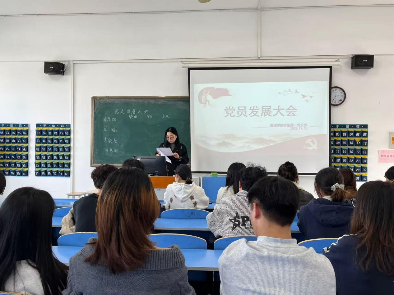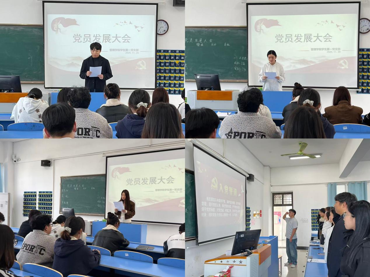 本次支部预备党员发展大会,为管理学院学生第一党支部新添4名同志。未来,支部将持续加强党员队伍建设,继续做好学生党员管理工作,为学院发展凝聚更多青春力量。