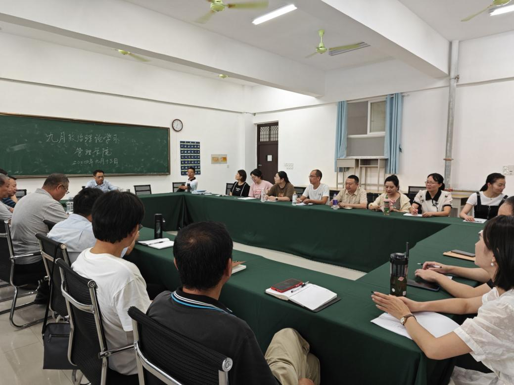在政治学习中,管理学院党总支副书记冯尧带领全体党员共同学习了九月份政治理论。1.全国科技大会、国家科学技术奖励大会、两院院士大会在京召开,习近平为国家最高科学技术奖获得者等颁奖并发表重要讲话;2.《求是》杂志发表习近平总书记重要文章《培养德智体美劳全面发展的社会主义建设者和接班人》;3.习近平作出重要指示强调,坚持融入日常、抓在经常,把党纪学习教育成果持续转化为推动高质量发展的强大动力;4.中国共产党第二十届中央委员会第三次全体会议公报;5.《中共中央关于进一步全面深化改革、推进中国式现代化的决定》;6.习近平:关于《中共中央关于进一步全面深化改革、推进中国式现代化的决定》的说明;7.中共中央 国务院关于弘扬教育家精神加强新时代高素质专业化教师队伍建设的意见;8.专家解读|以良法善治为清朗网络空间构建法治屏障;9.从“蓝屏事件”说开来:“网络卫士”实为“黑客帝国”。