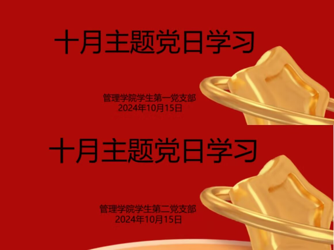 在政治学习后,管理学院第一、第二党支部开展了十月主题党日活动,会上先由党支部书记带领支部成员重温入党誓词、集体朗诵党章并组织党员交纳10月党费。随后党支部书记组织开展理论学习,重点学习了以下内容:1.庆祝中华人民共和国成立75周年招待会在京隆重举行 习近平发表重要讲话2.中华人民共和国国家勋章和国家荣誉称号颁授仪式在京隆重举行,习近平向国家勋章和国家荣誉称号获得者颁授勋章奖章并发表重要讲话3.习近平在全国民族团结进步表彰大会上发表重要讲话强调:推进中华民族共同体建设,巩固发展中华民族大团结4.习近平在全国教育大会上强调:紧紧围绕立德树人根本任务,朝着建成教育强国战略目标扎实迈进5.习近平:在党的二十届三中全会第二次全体会议上的讲话6.学习贯彻习近平总书记重要讲话和全国教育大会精神7.庆祝湖北省人民代表大会成立70周年大会举行8.省委常委会召开会议,传达学习习近平总书记重要讲话精神。此后,支部以“作为一名党员,结合自身实际,谈谈如何巩固拓展主题教育成果,推进中国式现代化荆州实践?”开展主题探讨,并结合工作实际,深入交流如何推进荆州的中国式现代化。