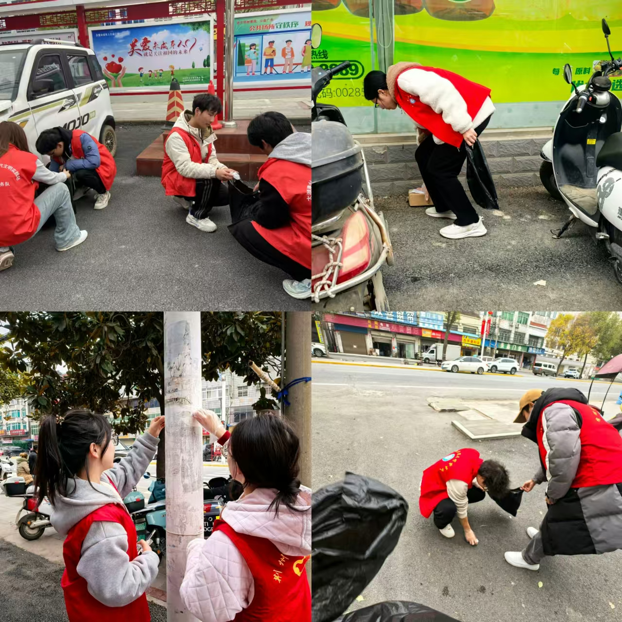在社区活动中,志愿者们都整齐有序地前往太湖港社区,到达目的地后,各位同学按负责人要求对社区道路,公共活动区域进行深度清洁,清除街道垃圾和小广告,让社区环境焕然一新。