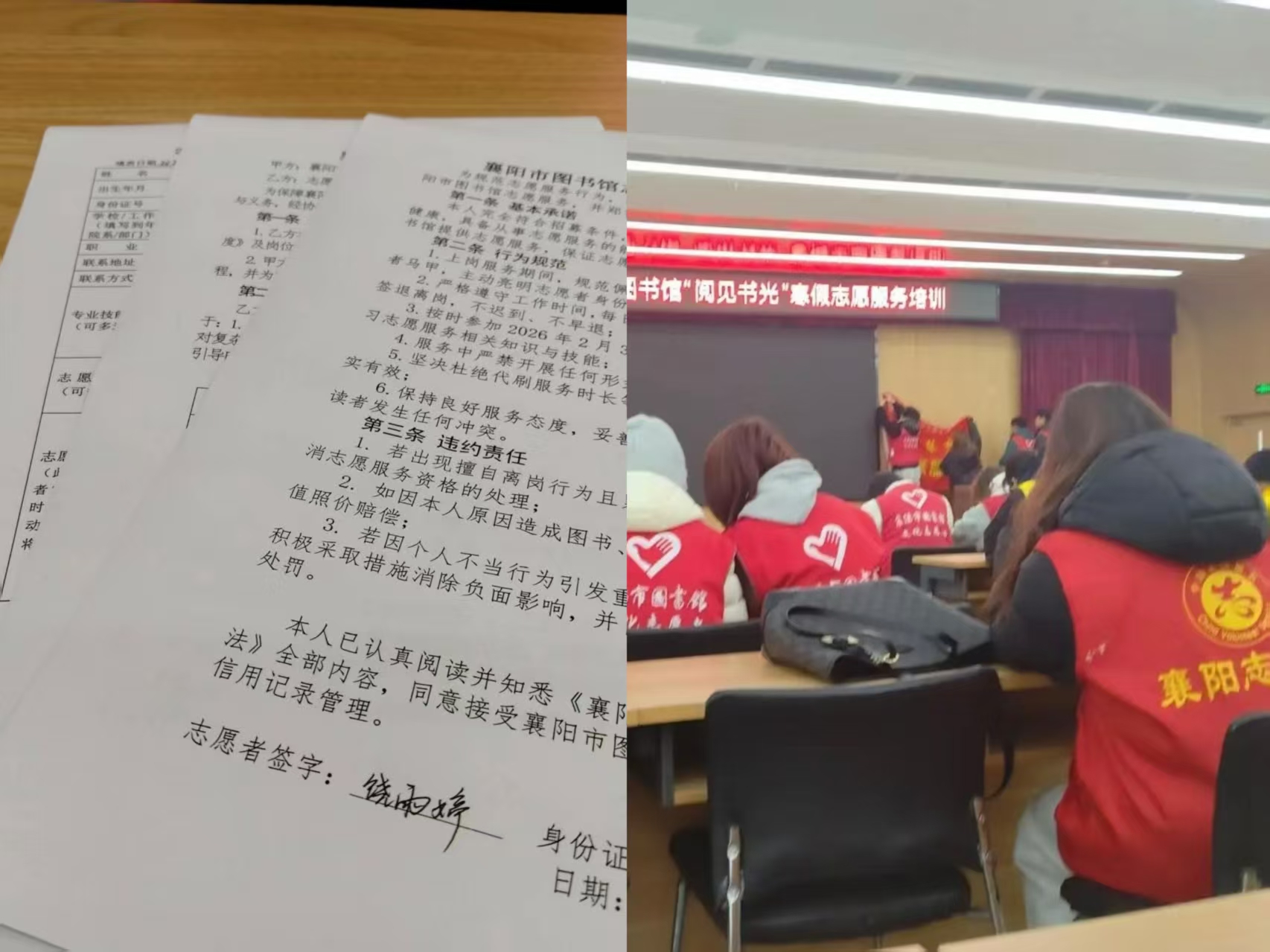 假期返乡期间,我通过汉水襄阳视频端了解到襄阳图书馆寒假志愿者招募信息,历经平台队伍申请、按提交顺序录取等环节,成功成为图书馆第三批志愿者,开启了一段书香满溢的志愿之旅。