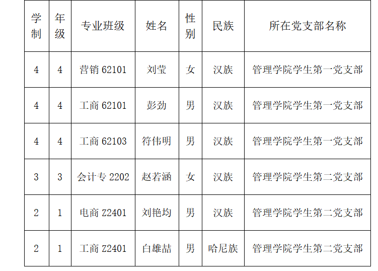 关于刘莹等6名同志预备党员拟转正的公示