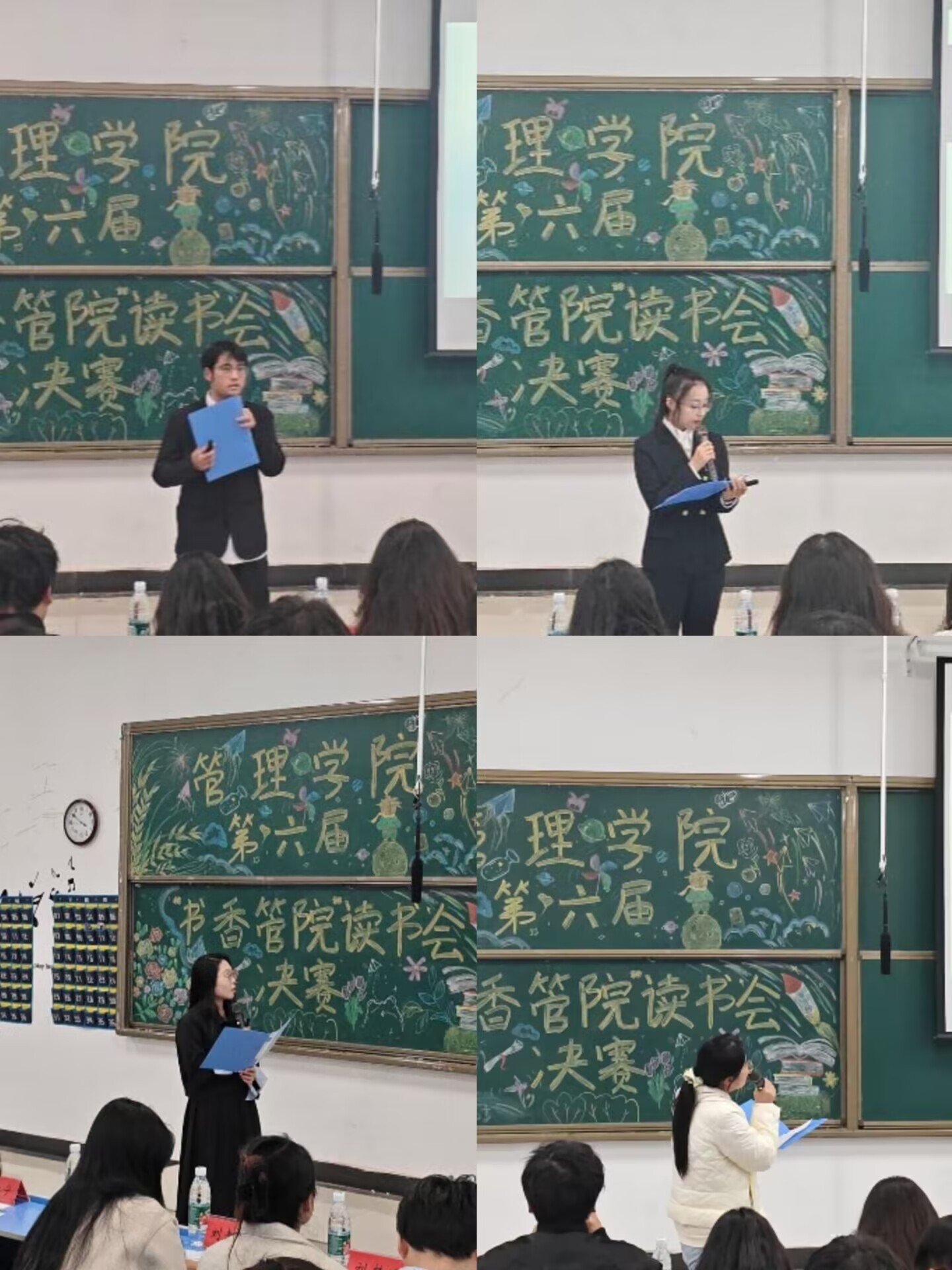本网讯(通讯员:向恩东)胸藏文墨怀若谷,腹有诗书气自华。为进一步倡导读书风尚,营造“爱读书,善读书,读好书”的浓厚学习氛围,点燃同学们对读书的热爱,丰富校园文化生活,管理学院于11月27日18:30在5405教室举办第六届“书香管院”读书会决赛。