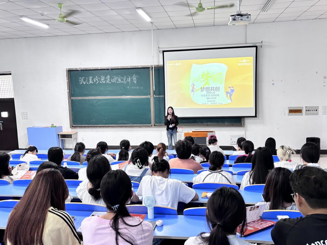 宣讲会伊始,珍岛集团高校招聘负责人深入介绍了公司发展历程、业务范畴及核心竞争优势。作为行业头部企业,珍岛集团总部设于上海,第二总部扎根武汉光谷,业务广泛覆盖零售消费、汽车、金融等多个重点领域,其强大的综合实力与广阔的业务布局,让在场学生对企业规模与行业影响力有了清晰且直观的认识。