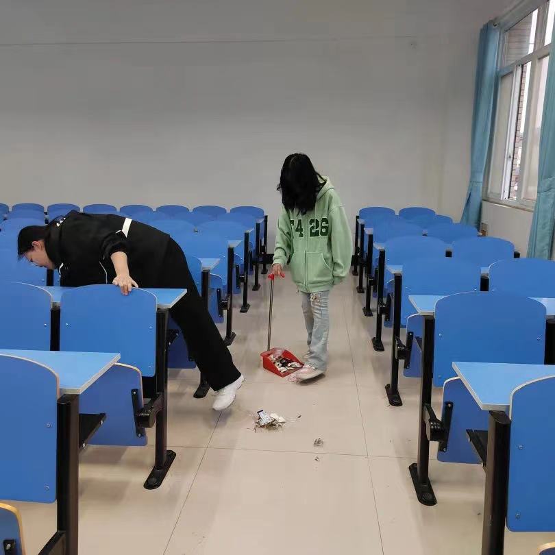 本网讯 为迎接即将到来的全国大学生四六级考试,改善同学们的学习环境。管理学院于3月10日下午17点40分对六栋教学楼进行了全面的清洁工作。