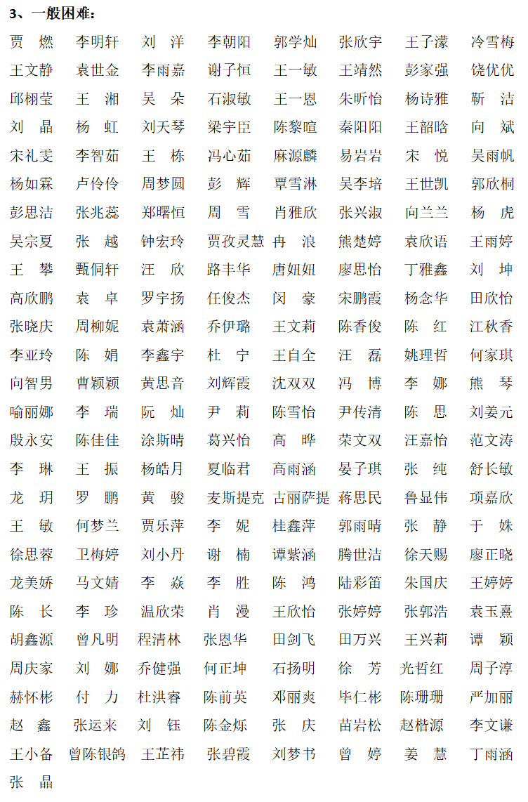 根据《WilliamHill中文官方网站家庭经济困难学生认定办法》,我院积极组织,坚持实事求是、客观公正的原则,由学生本人提出申请,采取民主评议和学校评定相结合的办法,对提交了家庭经济困难材料的学生进行了认定。现将认定结果公示如下: