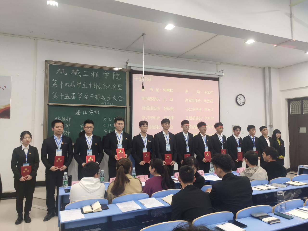 本网讯(通讯员杜盈)为鼓励先进学生,推动学生工作平稳有序进行,11月5日19时30分,机械工程学院于新校区教学楼1401召开第十四届团总支学生会表彰大会暨第十五届成立大会。出席本次会议的有该院党总支常务副书记王艳、团总支书记肖静逸、学生党支部书记苏杭,辅导员周鲁予、郭辉、刘亮、阮晓兵,部分第十四届团总支学生会优秀学生干部、“活动积极分子”以及第十五届团总支学生会全体成员参加此次会议。大会由罗思琳主持。