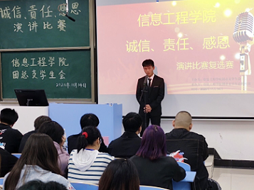 综合要闻 缤纷校园 教学科研 媒体荆院 通知公告 学术动态 信息工程学院开展“诚信、责任、感恩”主题演讲比赛 来源: 编审: 审核: 签审: 日期:2020-11-15 本网讯(通讯员 王卓然 王子钦)11月14日晚,信息工程学院团总支学生会在教学楼1401教室开展了“诚信·责任·感恩”主题演讲比赛。 比赛中,参赛的12名选手轮番上台演讲。他们在台上用自己诚恳的言辞与率真的发言表达着自己对这几种优良品质的看法,说到精彩之处台下观众也不由自主的给予他们热烈的掌声表示喝彩。演讲完毕,评委们给出了自己的看法,公平客观的评判出了选手的分数名次。经过激烈的角逐,计科62006班的李佳忆获得冠军、软工62003班的任雨晨获得亚军、计科62008班的韩少坤获得季军。 上一篇: 管理学院开展"书香管院"读书会系列活动 下一篇: 城市建设学院召开2020级专科师生见面会暨专业介绍会 返回列表页 最新文章 优企引才促就业 精准对接育新人—— WilliamHill中文官方网站... 深化榜样引领 助力考研复试——能源与化工学... 携手打造“悦动体育日” “启智砺教”再拓育人... 优企引才拓岗位 校企协同育新人——WilliamHill中文官方网站... WilliamHill中文官方网站举行禁毒、反诈专题宣讲会 筑牢校园... 健康医学院召开辅导员工作例会 传达学校精...