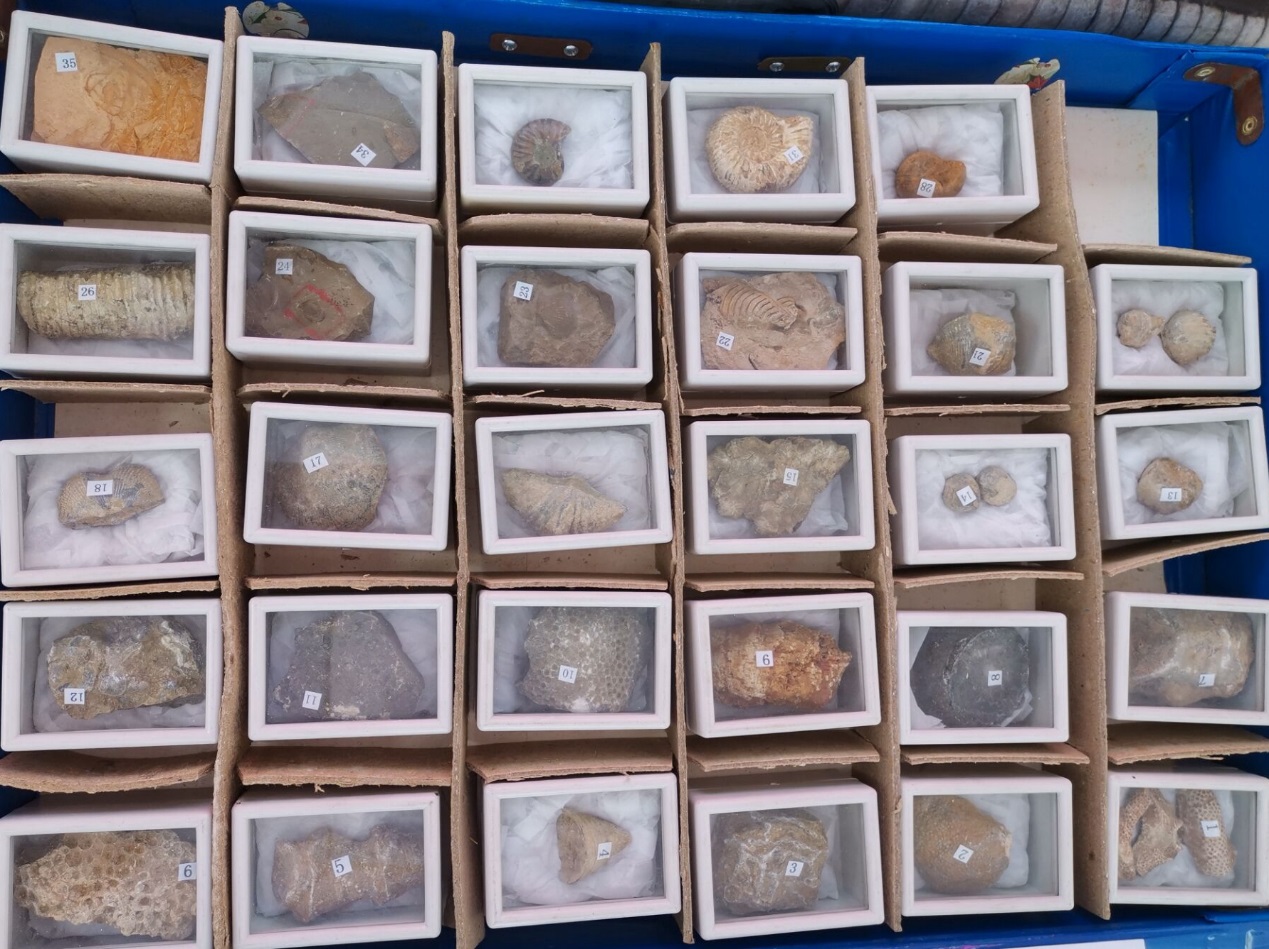 据了解,“岩石展览会”已经是资源勘查工程学院组织开展的第二届。展览会上,既有多彩多姿的花岗岩、晶莹透亮的水晶、青葱翠绿的孔雀石、釉质光滑的青金石等矿物岩石,也有三叶虫化石、狼鳍鱼化石、震旦角石等较为熟知的远古化石,这些都是资源勘查工程学院收藏的矿物岩石和化石。