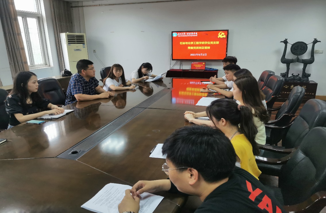 本网讯 6月2日,按照学院党委组织部统一安排,石油与化学工程学院学生党支部在行政楼四楼会议室举行2021年上半年预备党员转正答辩会。参加本次转正答辩的预备党员有郑顺涛、杨思嘉、杜明阳、王新蕾、王岚星、马迪、刘成香、解澳共8名同志。答辩会由石油与化学工程学院党总支副书记司翔主持,学生党支部全体党员参加。