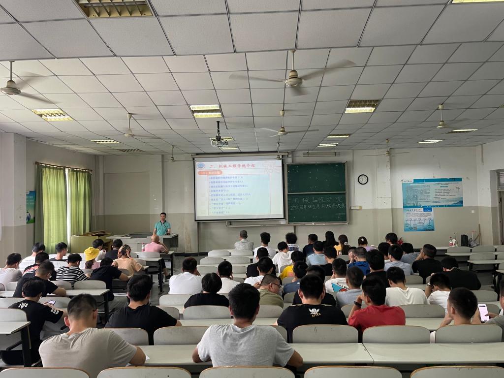 本网讯(通讯员 张永聚)为进一步调动2022届毕业生的考研积极性,帮助备考学生明确考研目标,机械工程学院于6月25日10:30在行政楼Y-201教室召开2022届毕业生考研动员会。本次动员会邀请了长江大学机械工程学院副院长李美求,行政副院长张云华作为嘉宾出席会议。该院院长眭满仓、2018级辅导员和2022届全体本科毕业生参加会议。