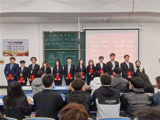 本网讯(通讯员 陈星宇 张国富)白驹过隙,转眼又是一年。为贯彻落实自强不息、追求卓越的新时代青年精神,不断提升学生会干部的责任感和服务意识,2021年11月10日18:30,机械工程学院于教学楼2401召开第十五届学生干部表彰大会暨第十六届团总支学生会成立大会。机械工程学院党总支书记王艳老师,团总支书记苏杭老师,辅导员郭辉、刘亮、阮晓兵、王琼老师,第十五届优秀学生干部、第十六届团总支学生会全体成员参加会议。
