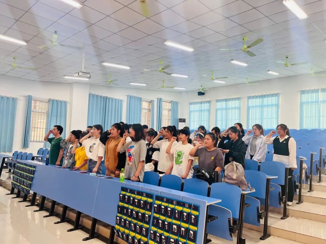 辅导员李程老师部署了英语学习小组日后工作的相关事项和相关人员,并希望同学们严格遵守各项要求。会上,由数学62102学习委员肖丽琪带领同学们宣誓。同学们进行了激情的宣誓,喊出了他们的信心与激情,勇敢与拼搏!铿锵有力的誓言,宣示了他们战胜英语四级考试的决心与信心!