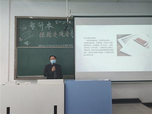 本网讯(通讯员 李馨颉)为引导城市建设学院的同学们树立在专业方面继续深造的信心,进一步激发同学们对专升本的积极性,帮助同学们更加充分地了解专升本,城市建设学院于2022年4月19日下午4点在教学楼1201教室开展了专升本经验交流会。出席本次交流会的特邀嘉宾有城市建设学院副院长贺才豪老师、团总支书记叶小华老师、部分辅导员老师以及来自造价Z62001班杨鹏宇、工管Z62101班张钰涵和土木Z62101班唐旋3位专升本班级学生。参加本次专升本经验交流会的是城市建设学院2020级,2021级部分准备参加专升本考试的同学。