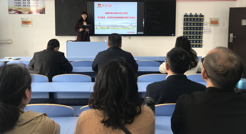 本网讯 健康学院/材料与化工学院3月7日中午组织全体教职工在2403教室召开学习集团董事丁锋、党委书记张晓彬、代理校长陆博在2023年春季学期第二次中层干部大会上的讲话精神暨新学期工作部署会议。会议由副院长邓仕英主持。