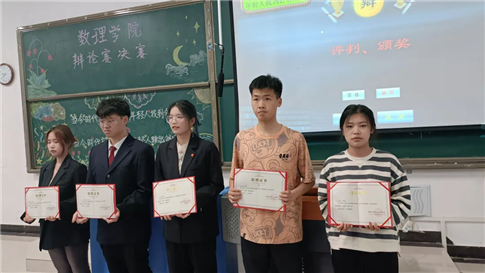 本次比赛获胜队伍是无言以队的辩手是:罗金辉、毛晨兵、柳林、范顺丽;优秀辩手的选手有:苏思铭、张正瑞、马金玲、柳林、何诗扬。