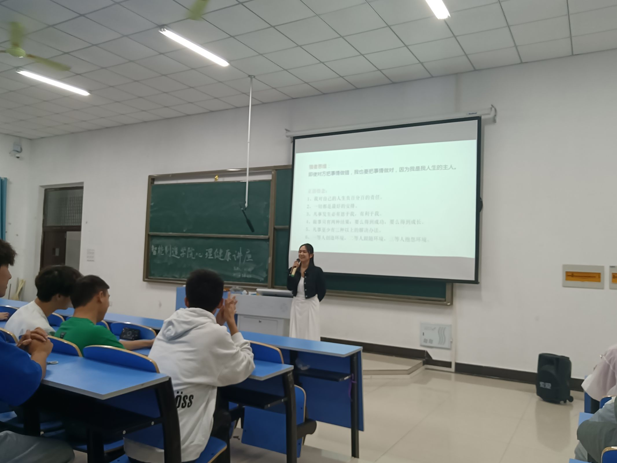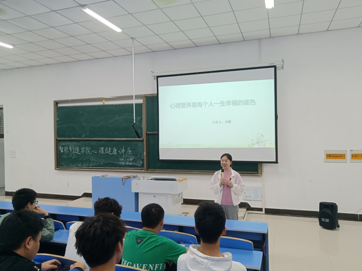 本网讯(通讯员 阮胜乾 吴健)为进一步提高大学生心理素质,促进大学生身心健康,智能制造学院于5月26日下午18:30在3105教室举办了主题为“心理营养是每个人一生幸福的底色”的心理健康讲座,特邀学院心理健康中心主任刘娜老师主讲。智能制造学院2021级、2022级各班班长、团支书、心理委员、寝室长参加此次讲座,辅导员王琼老师担任主持人。