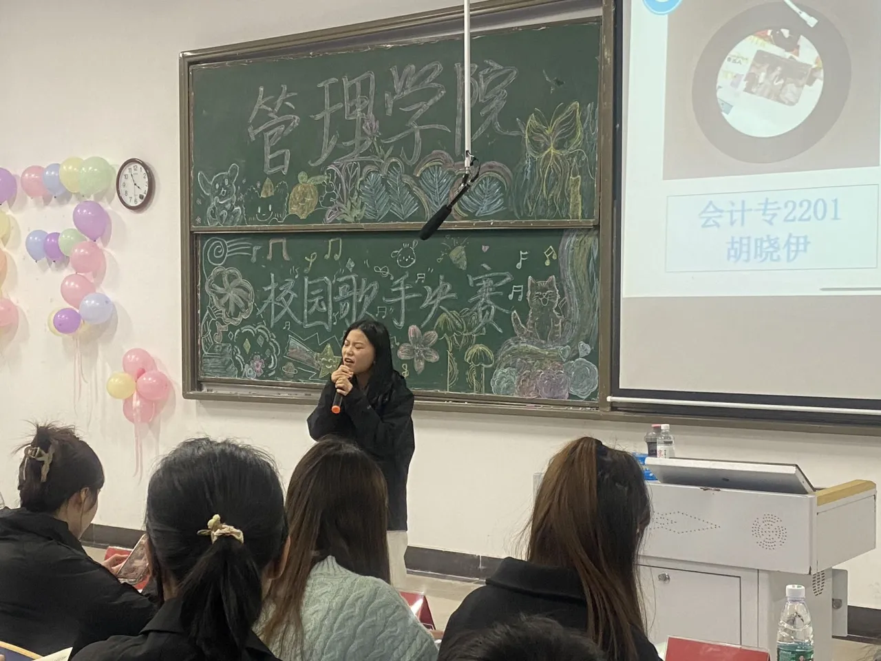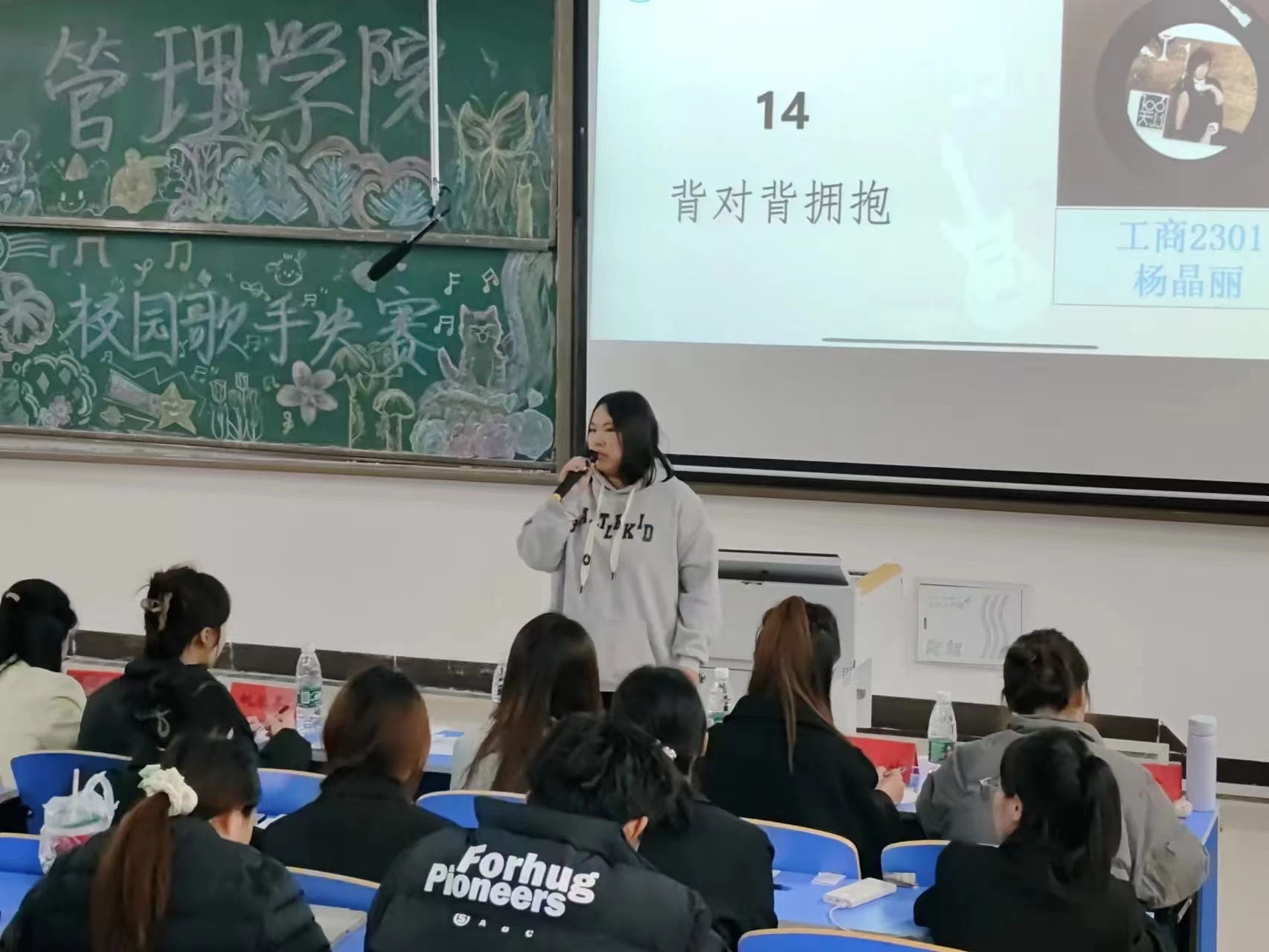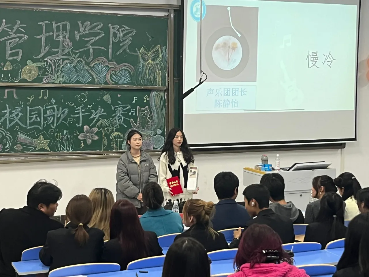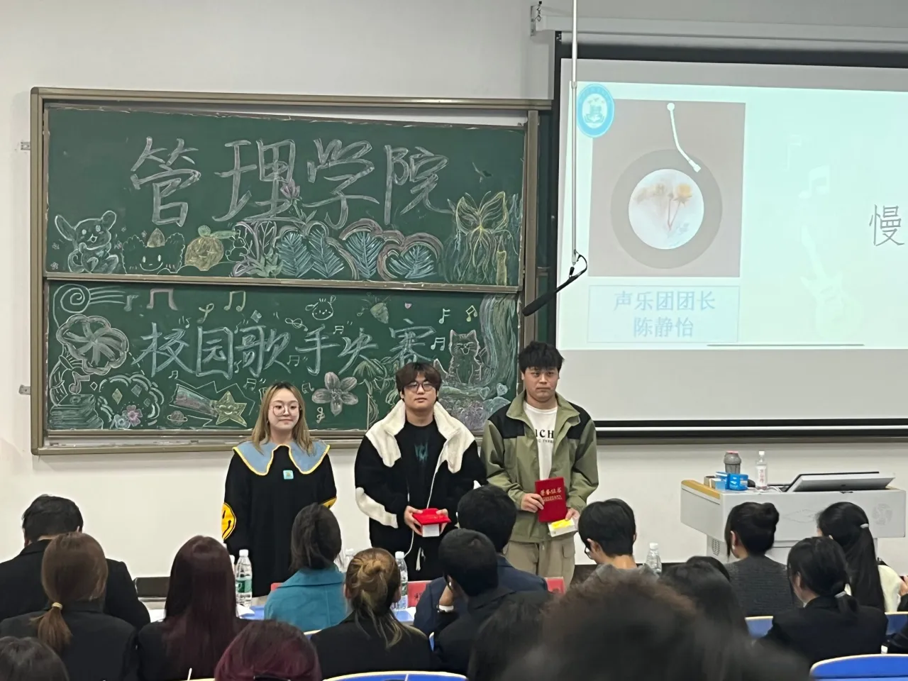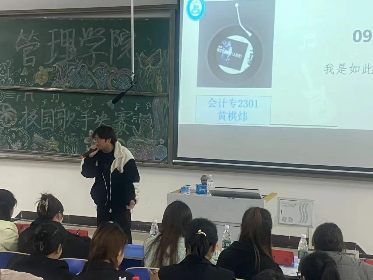 本网讯 为丰富校园文化生活,营造至善至美的校园文化氛围,激发同学们热爱艺术、展露才华的积极与热情,管理学院于2023年11月17日18:20在3205教室举办“我声言我心,管院好声音”决赛 。此次决赛特邀嘉宾有管理学院团总支书记季诚以及辅导员关婧瑶老师,评委由校学生会主席、艺术团主席、艺术团声乐团团长、新月吉他社社长等11位人员担任。