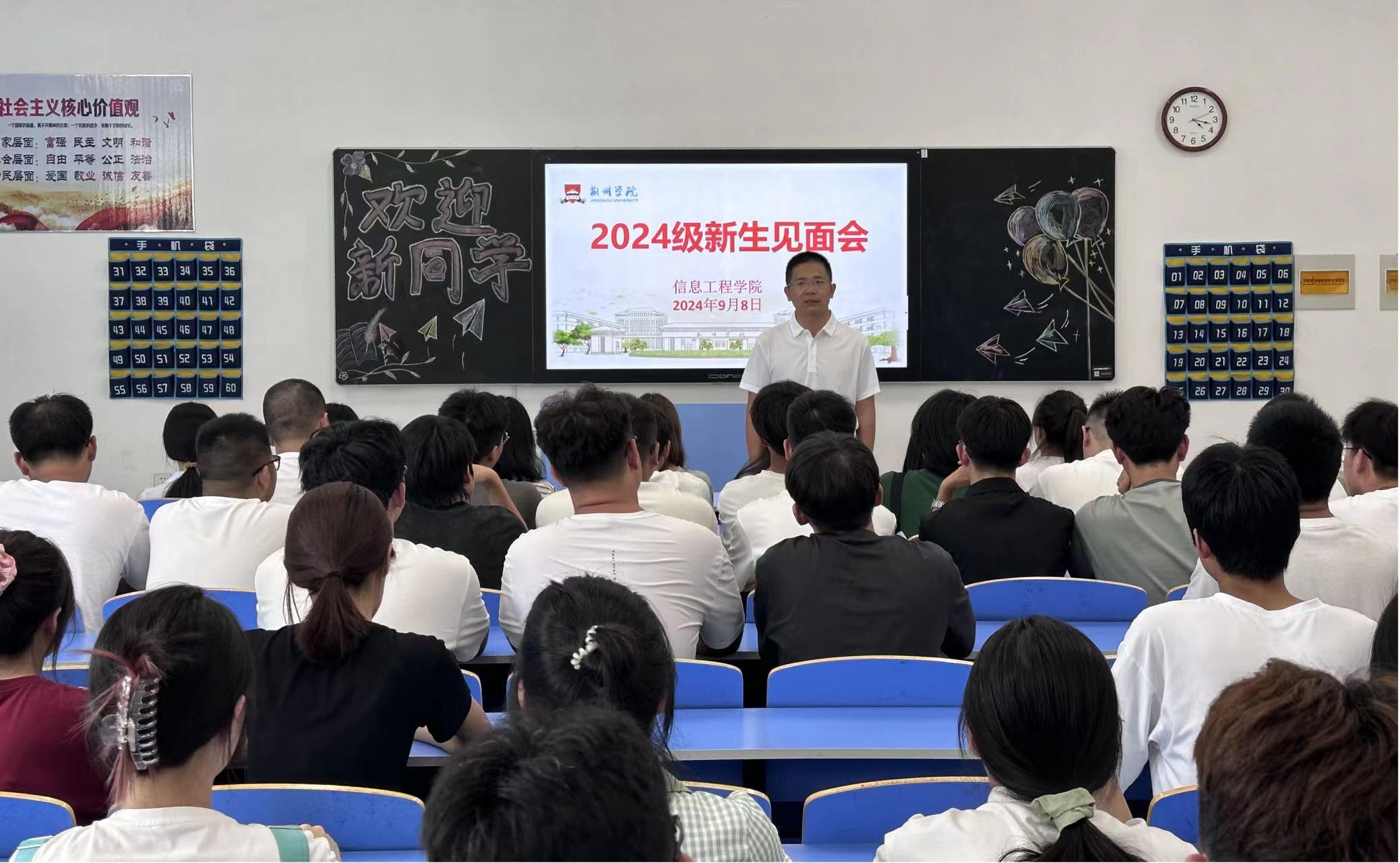 本网讯(通讯员 秦昕)为帮助新生更好地适应大学生活,实现角色转换,引导新生适应大学生活、明确学习目标,合理规划大学生活,9月8日下午信息工程学院2024级新生见面会在4教各个教室举行,信息工程学院党总支副书记郭满及2024级新生辅导员深入各个班级与新生见面交流。