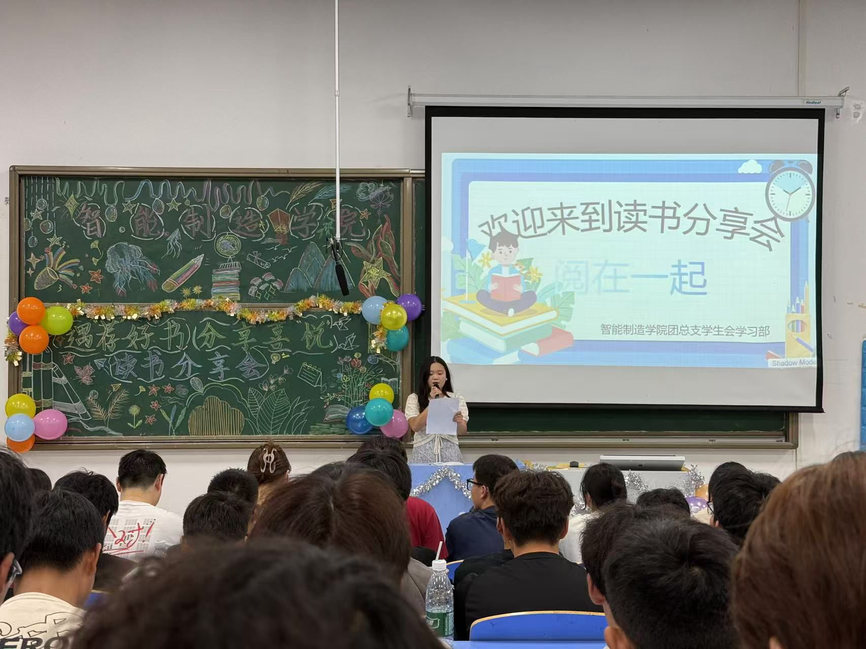 本网讯(通讯员 黄子健)书籍是人类进步的阶梯,为了激发大学生的阅读兴趣,培养深度思考的习惯,丰富同学们的课余生活,在校园内营造浓厚的读书氛围,10月17日晚,智能制造学院在3405教室开展以“遇‘荐’好书、分享喜‘悦’”为主题的读书分享会,此次活动由机械2402班吴桐主持,2024级全体新生参与。