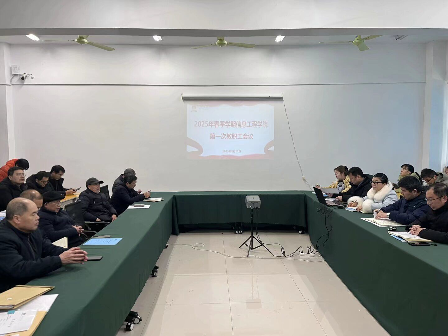 本网讯 2月21日上午,信息工程学院在5304会议室召开2025年春季学期首次全体教职工会议,全面部署新学期重点工作。会议由院长杜松江主持,学院全体教职工参会。