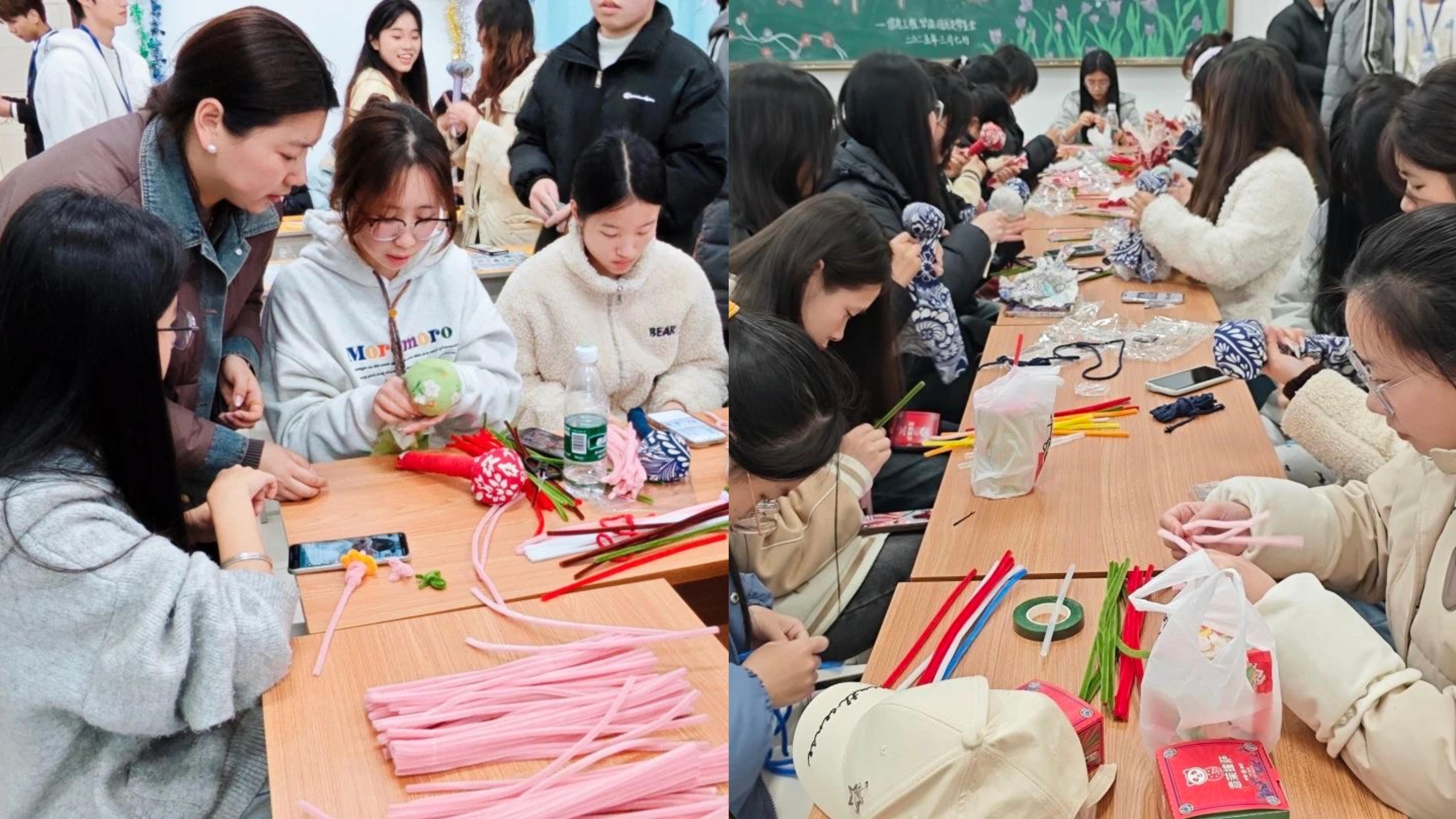 本次活动主要以石膏花牌、艾草锤、扭扭棒这些兼具创意与趣味的手工DIY活动为主,老师们和同学们根据个人兴趣,自由挑选手工材料,制作自己独特的节日礼物。在活动的结尾,老师和同学们展示作品并分享创作灵感与感悟,现场气氛热烈而融洽。