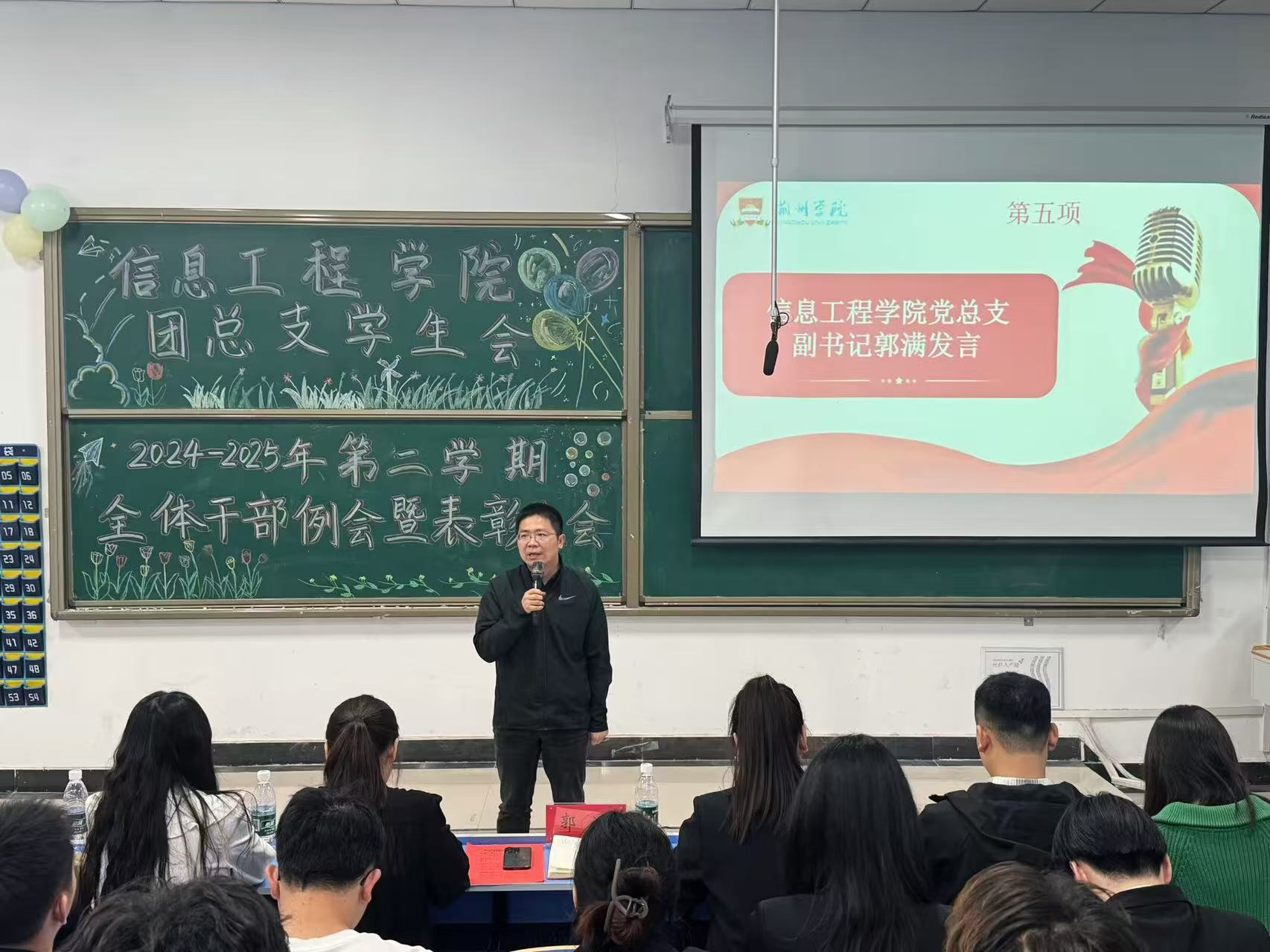 最后,信息工程学院党支部副书记郭满进行总结发言,对学生会干部过往成绩表示肯定,强调学生要“学中干,干中学”,也希望同学们在学习方面更加努力,提高自己的综合素质。