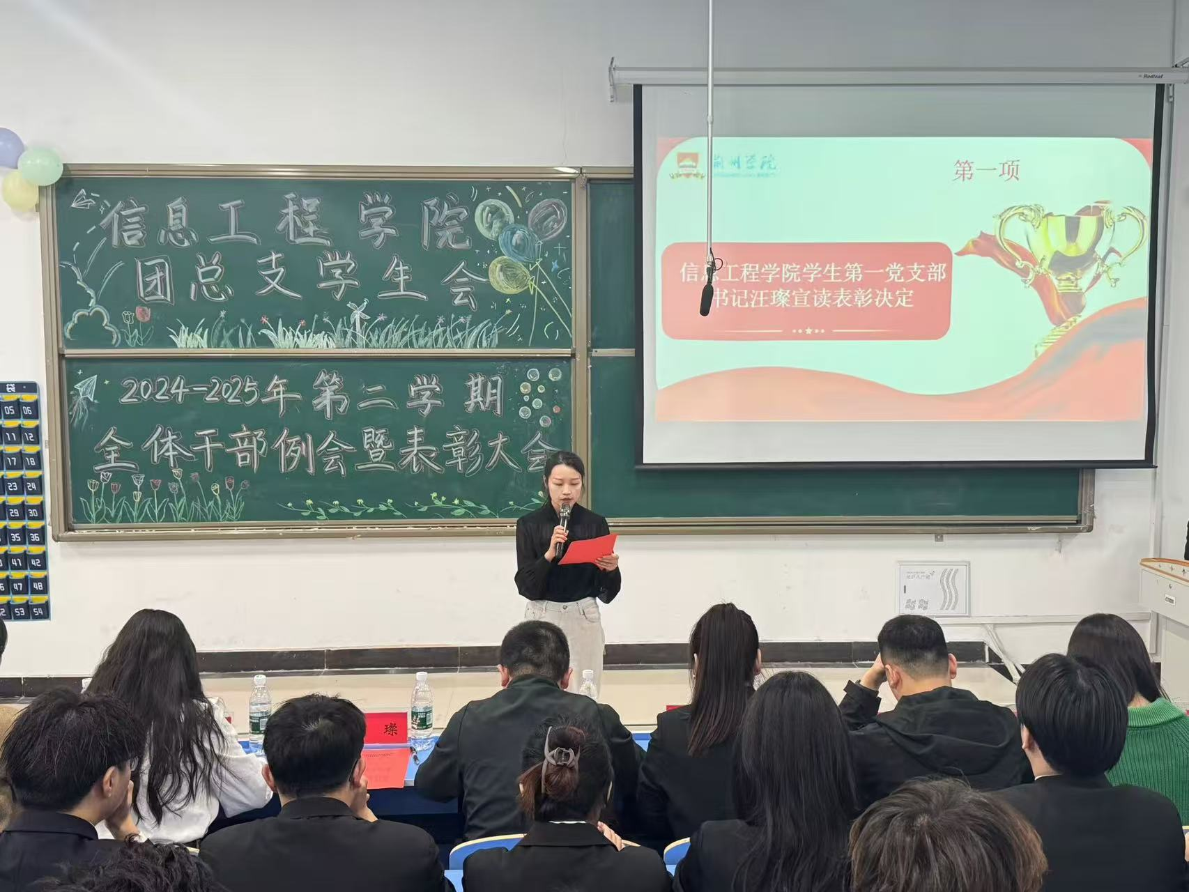 至此,信息工程学院2024-2025年第二学期学生会全体干部例会暨表彰大会圆满落幕。此次表彰大会不仅是对上学期的总结与回顾,更是对新征程的展望与部署。新学年,信息工程学院团总支学生会将继续以服务同学为宗旨,深化组织建设和活动创新,为学院发展贡献青春力量。
