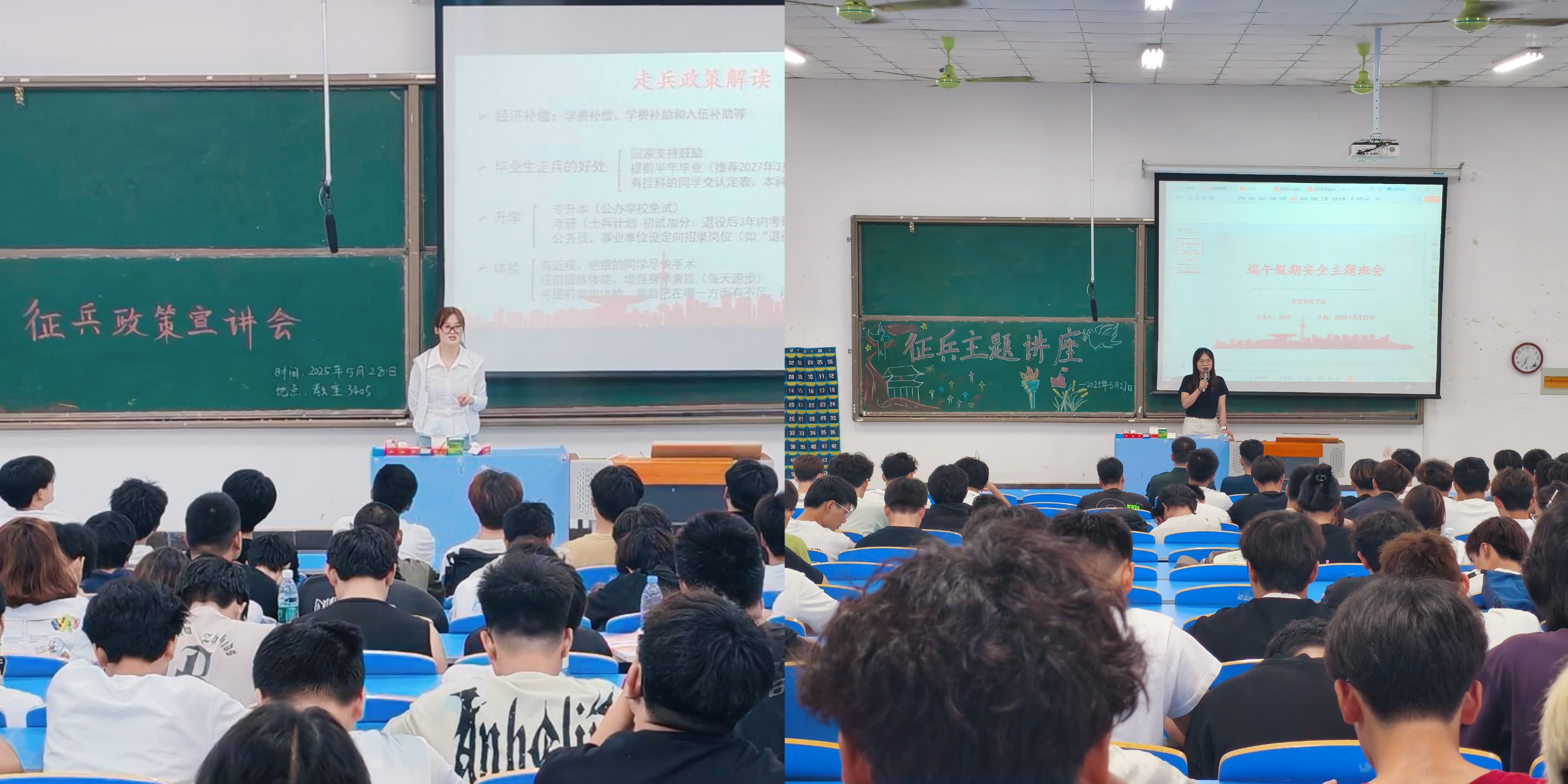 本网讯 为激发毕业生参军报国热情,扎实推进学院征兵工作,智能制造学院于5月27日、28日举办两场“青春向军营·奋斗正当时”毕业季征兵政策宣讲会。宣讲会由辅导员柯婷、晏学渊作主持并解读政策,特邀两名优秀退伍大学生士兵分享军旅经历,为毕业生提供精准政策指引和榜样力量。