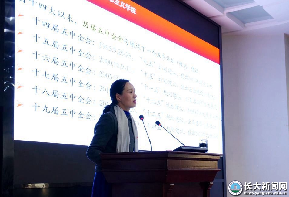 本网讯 为深入学习宣传贯彻党的十九届五中全会精神,按照省委统一部署,12月4日下午,省委宣讲团成员、武汉纺织大学马克思主义学院院长金艳教授在长江大学12教405报告厅作宣讲报告。我院作为组织单位安排院领导、全体中层干部、师生党员代表参加了报告会。