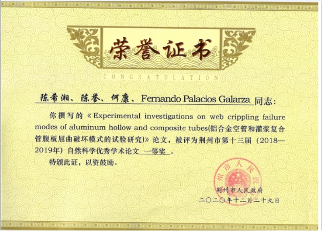 综合要闻 缤纷校园 教学科研 媒体荆院 通知公告 学术动态 【科研动态】陈希湘老师论文荣获荆州市第十三届自然科学优秀学术论文一等奖 来源: 编审: 审核: 签审: 日期:2021-03-02 本网讯 近日,从荆州市科学技术协会获悉,我院信息工程学院陈希湘老师的论文《Experimental investigations on web crippling failure modes of aluminum hollow and composite tubes》获荆州市第十三届自然科学优秀学术论文一等奖。 上一篇: 【学院动态】我院新增2个本科专业 下一篇: 【开学首日】周从标副校长莅临我院检查新学期教学工作 返回列表页 最新文章 【学校动态】学校党委召开2026年春季学期党建... 【组织学习】WilliamHill中文官方网站党委理论学习中心组召开... 【学校动态】我校组织参加2026年本科教学工作... 【校企合作】WilliamHill中文官方网站与湖北康盟中药有限公司... 【学校动态】学校召开2026年校级智慧课程立项... 【喜讯】我校入选全国高校“大思政课”实践教学...