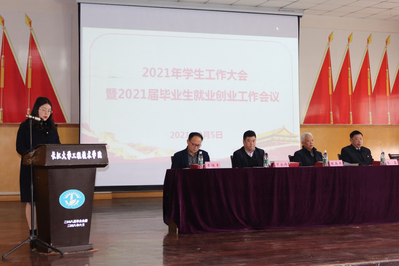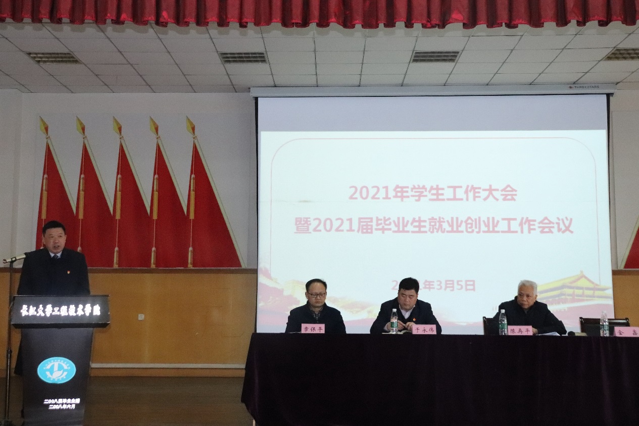 本网讯(通讯员 肖巍)3月5日下午,学院在行政楼第二会议室召开2021年学生工作大会暨2021届毕业生就业创业工作会议。党委书记金鑫、党委副书记于永伟、副院长高永兴、副院长章保平出席会议。各行政部门负责人,分院院长、副院长、党总支副书记,学生工作处、团委、校企合作与就业指导处、大学生创新创业中全体工作人员和全体辅导员共90余人参加了会议。会议由驻校董事、副董事长陈再平主持。